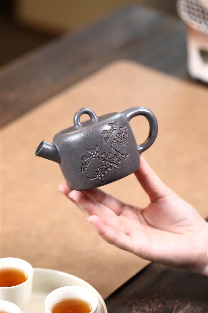 【作品介紹】此款壺形線條流暢,壺把,壺嘴,壺身壹氣呵成栩栩如生,是收藏把玩的好壺,泥料色澤古樸典雅,日久使用,漸露鋒芒,養成變化快,溫潤莊重,用其泡茶,使用的年代久,壺身就溫潤,泡出來的茶湯也就醇郁芳馨。