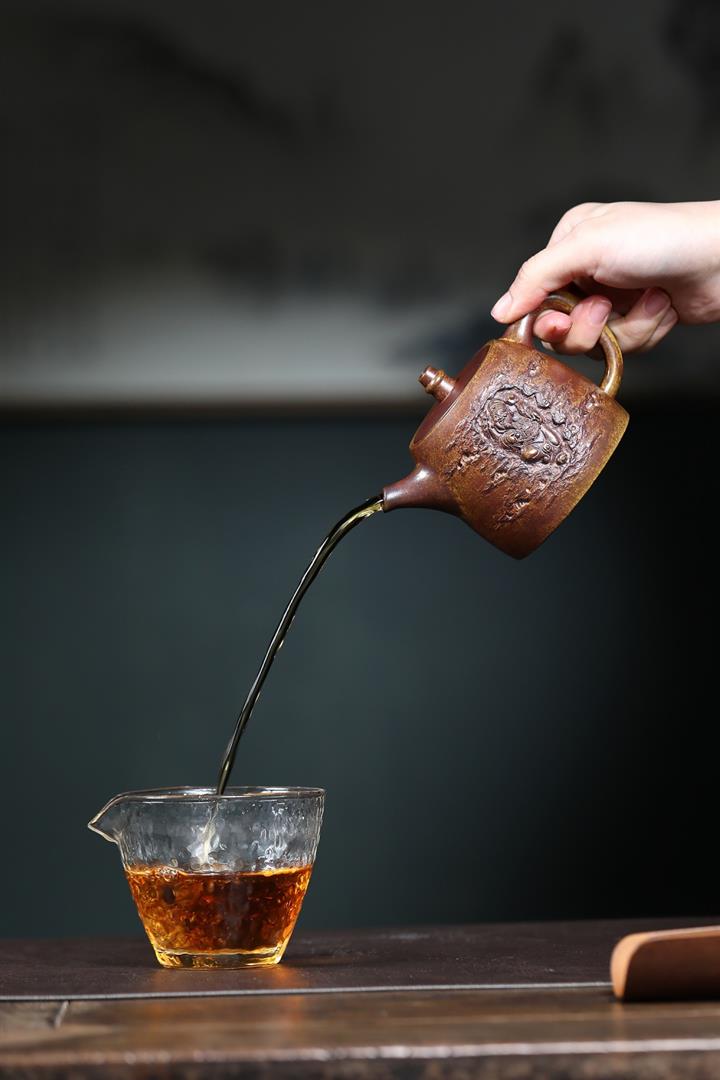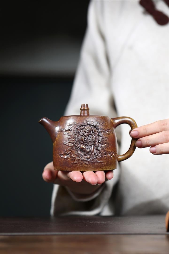 原礦雲霧沈香柴燒純手工刻繪六方漢雲壺POT6580