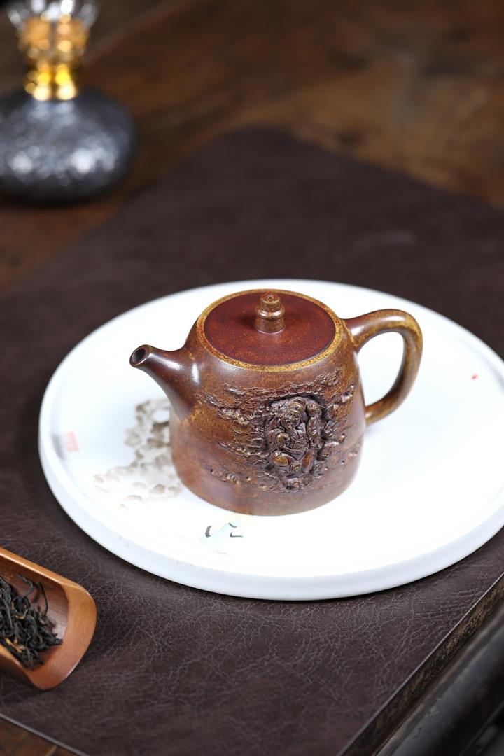 原礦高溫柴燒黃金段隱龍靈芝漢瓦壺POT6576