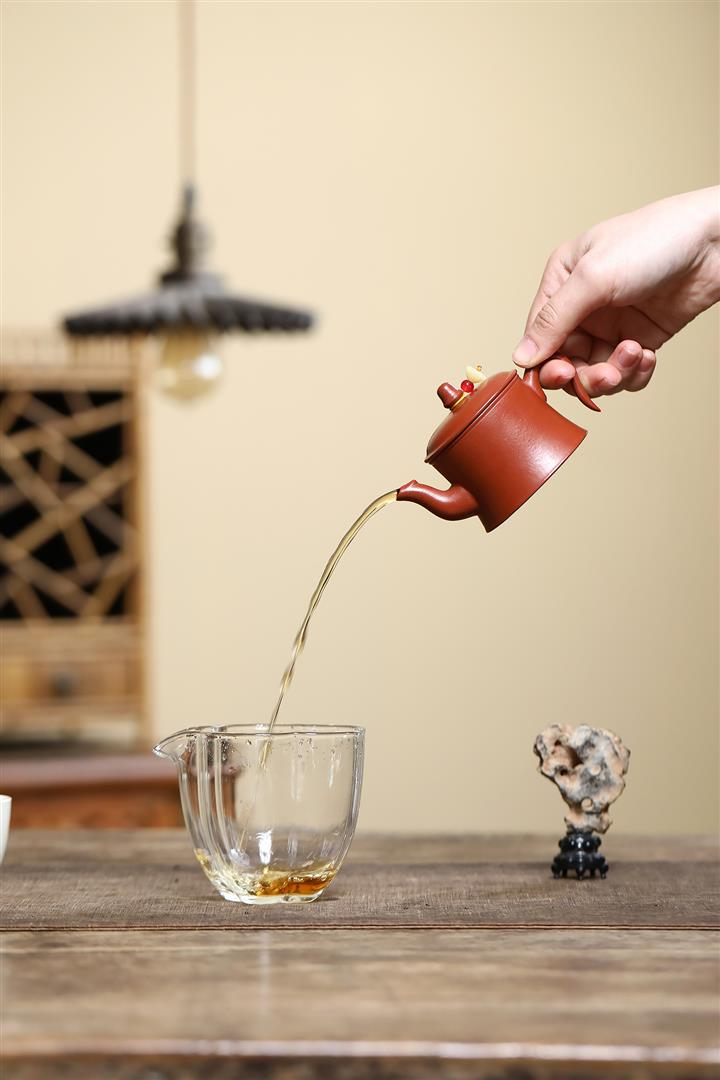【泥料特點】砂土氣重,似淳實農民,日久使用,漸露鋒芒,養成變化,溫潤莊重。紫砂是壹種雙重氣孔結構的多孔性材質,氣孔微細,密度高。用紫砂壺沏茶,不失原味,且香不渙散,得茶之真香真味。紫砂使用越久,壺身色澤越發光亮照人,氣韻溫雅。紫砂壺長久使用器身會因撫摸擦拭,變得越發溫潤光澤。