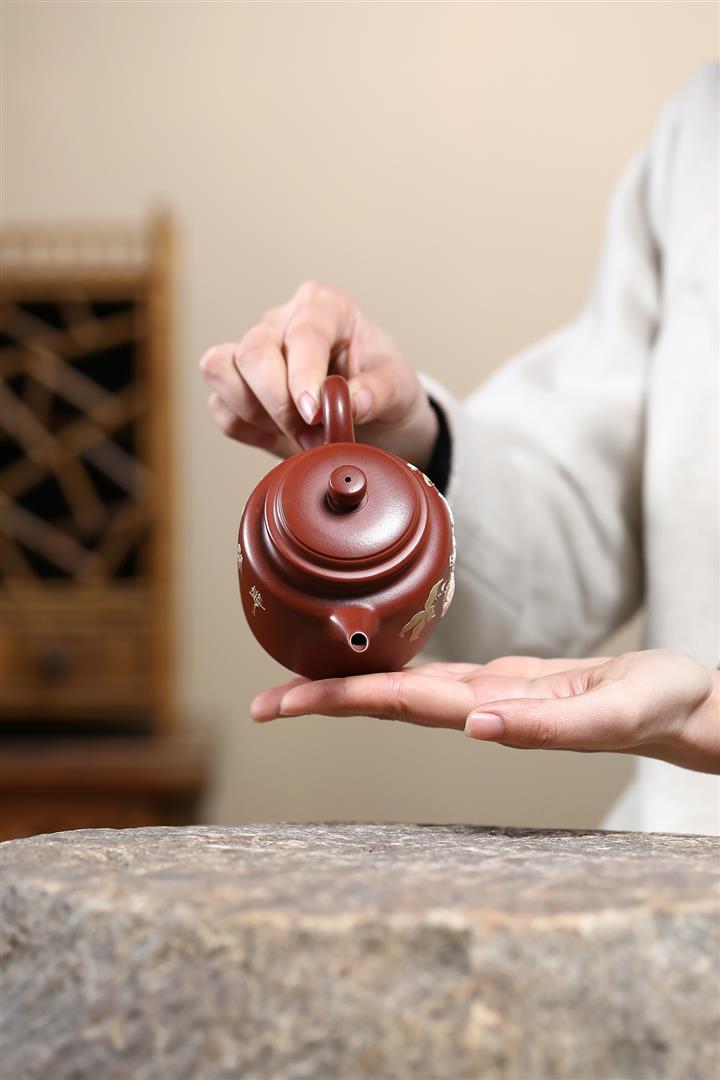 【泥料特點】砂土氣重,似淳實農民,日久使用,漸露鋒芒,養成變化,溫潤莊重。紫砂是壹種雙重氣孔結構的多孔性材質,氣孔微細,密度高。用紫砂壺沏茶,不失原味,且香不渙散,得茶之真香真味。紫砂使用越久,壺身色澤越發光亮照人,氣韻溫雅。紫砂壺長久使用器身會因撫摸擦拭,變得越發溫潤光澤。