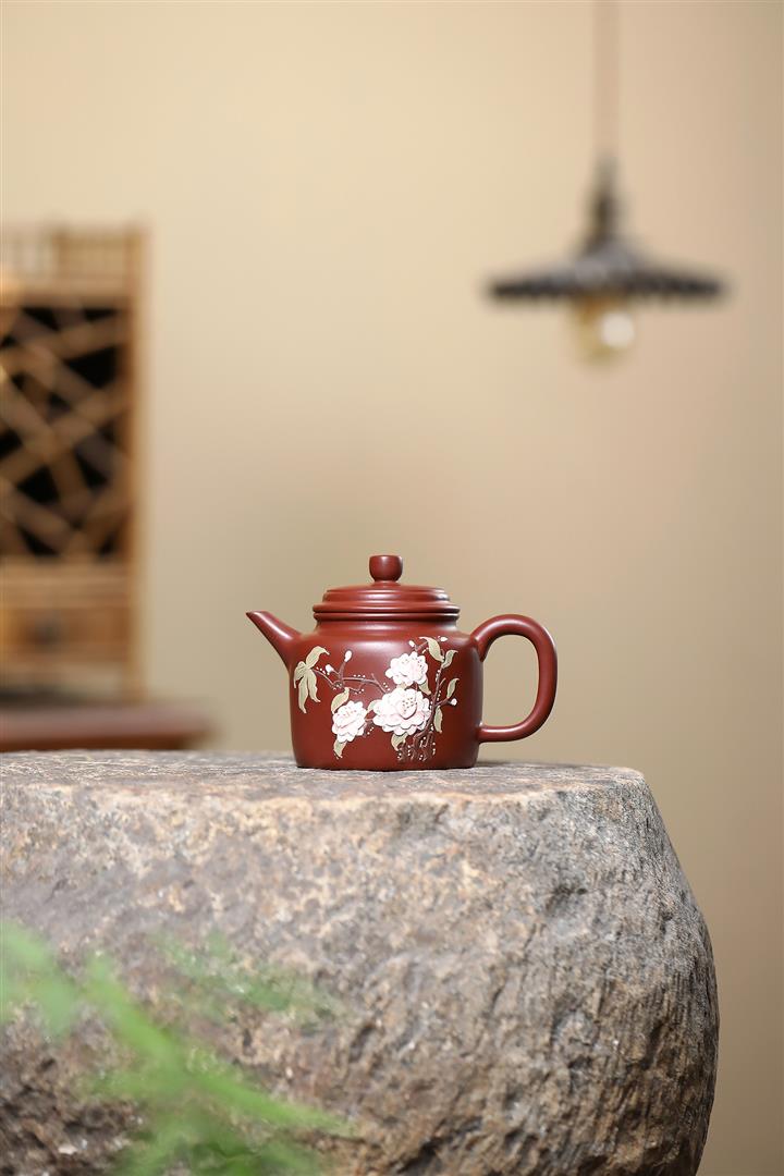 200cc原礦大紅袍花開富貴劍流德鐘茶壺POT9269