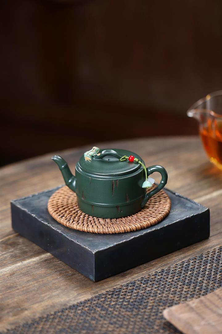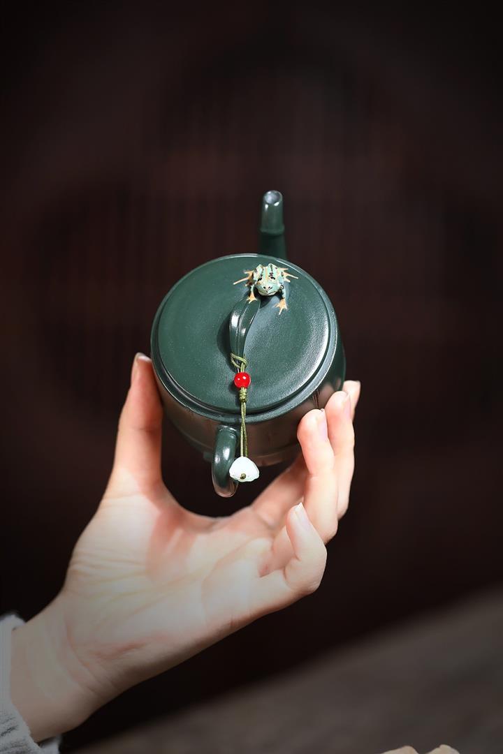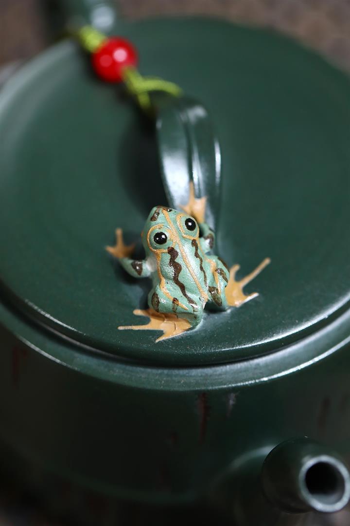 150cc原礦優質綠泥竹蛙聽雨茶壺POT9270