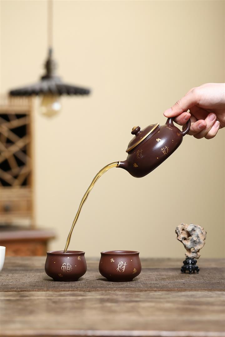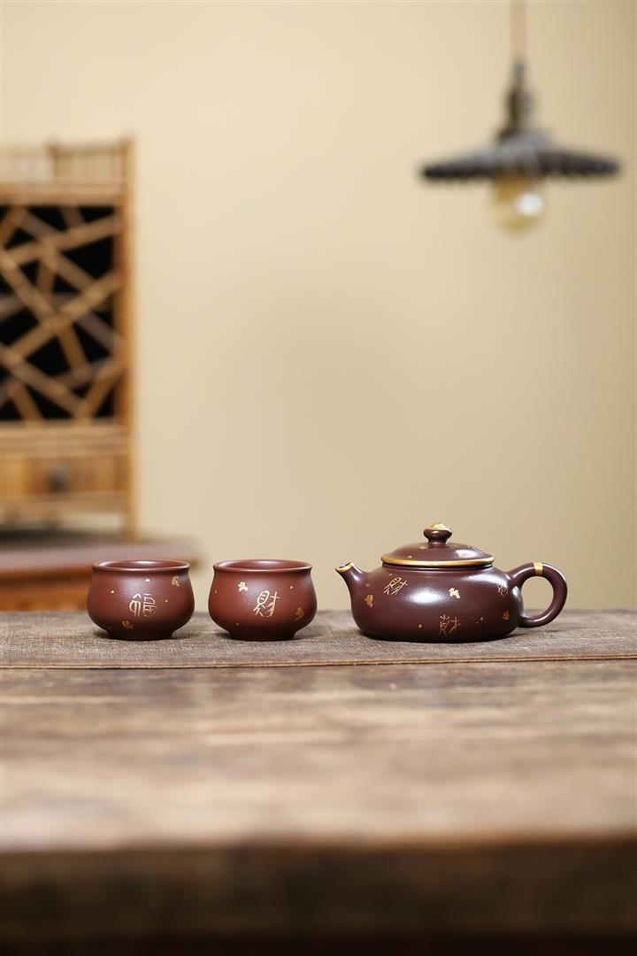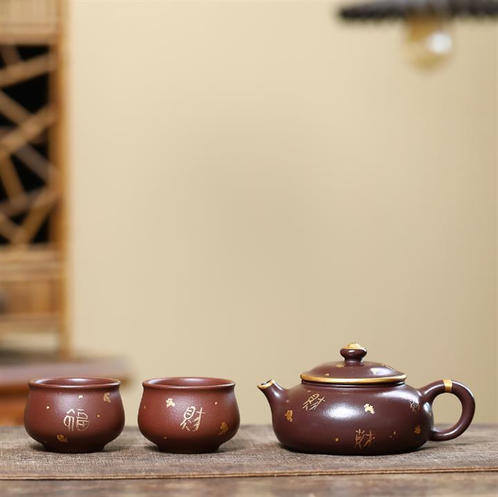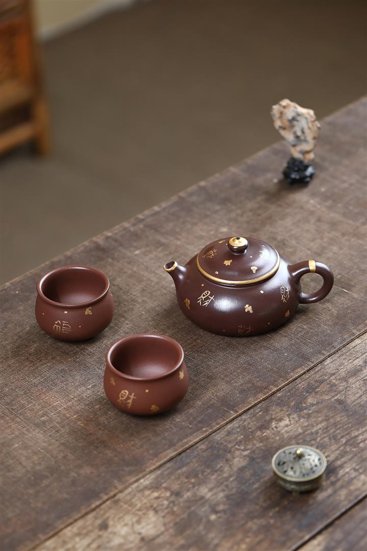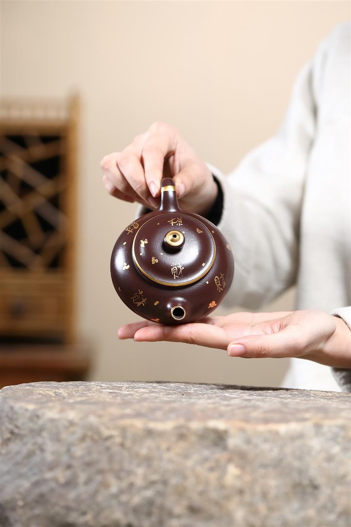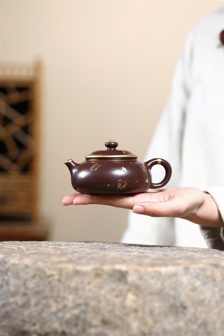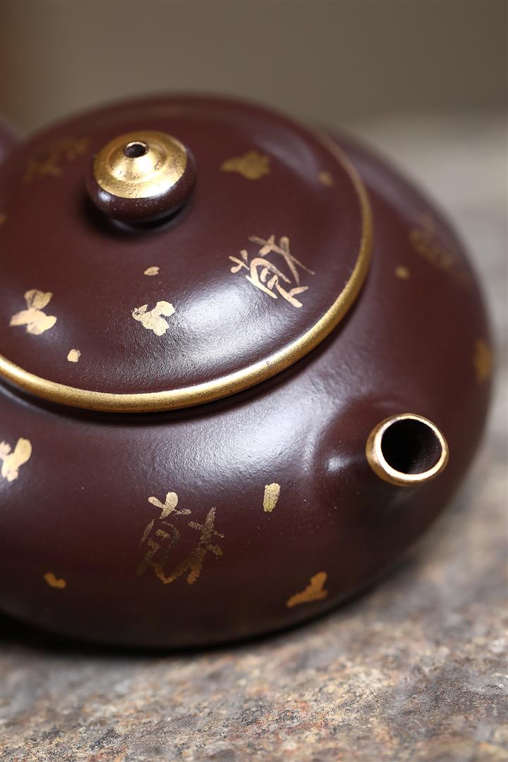 180cc原礦紫泥描金寒江茶壺POT9280