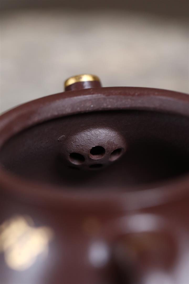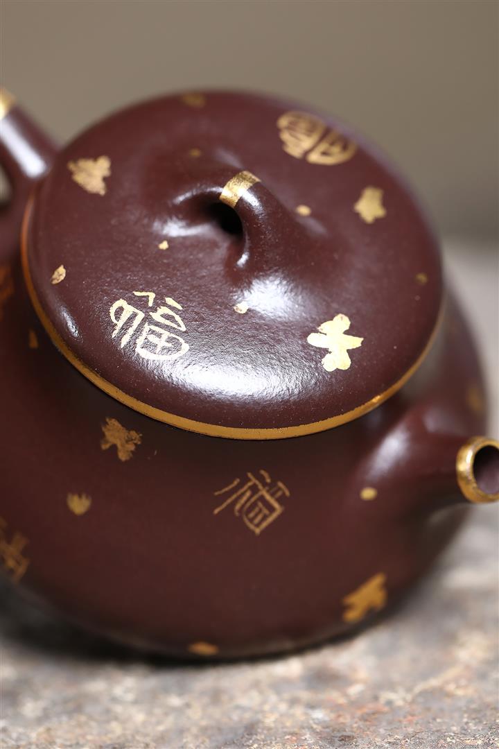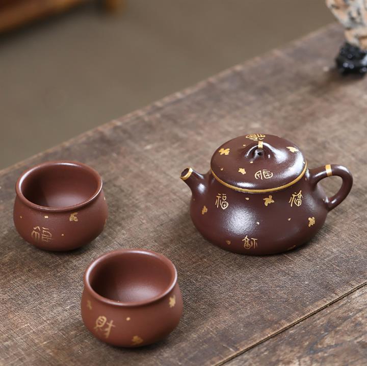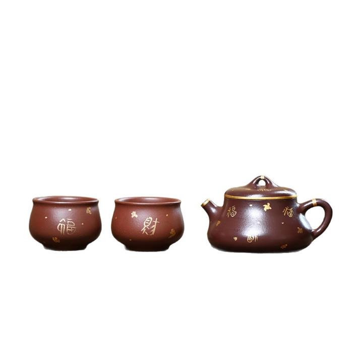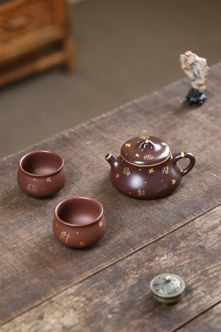 150cc原礦紫泥描金小蘊瓢壹壺兩杯茶壺POT9284