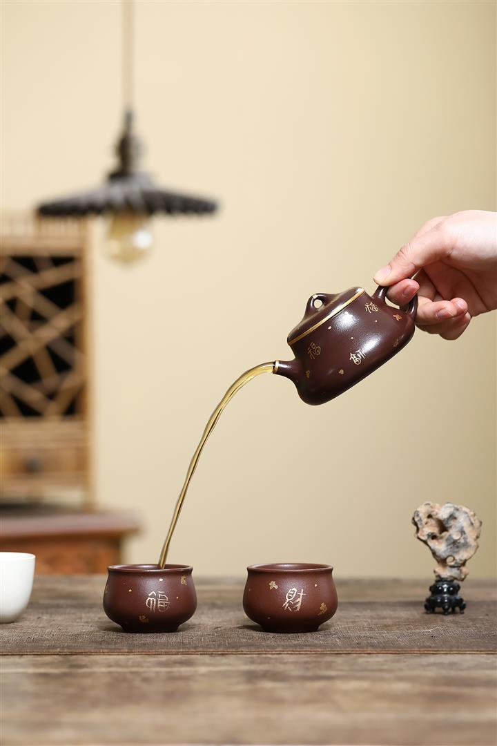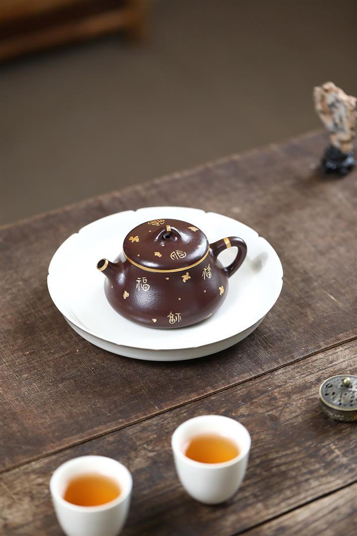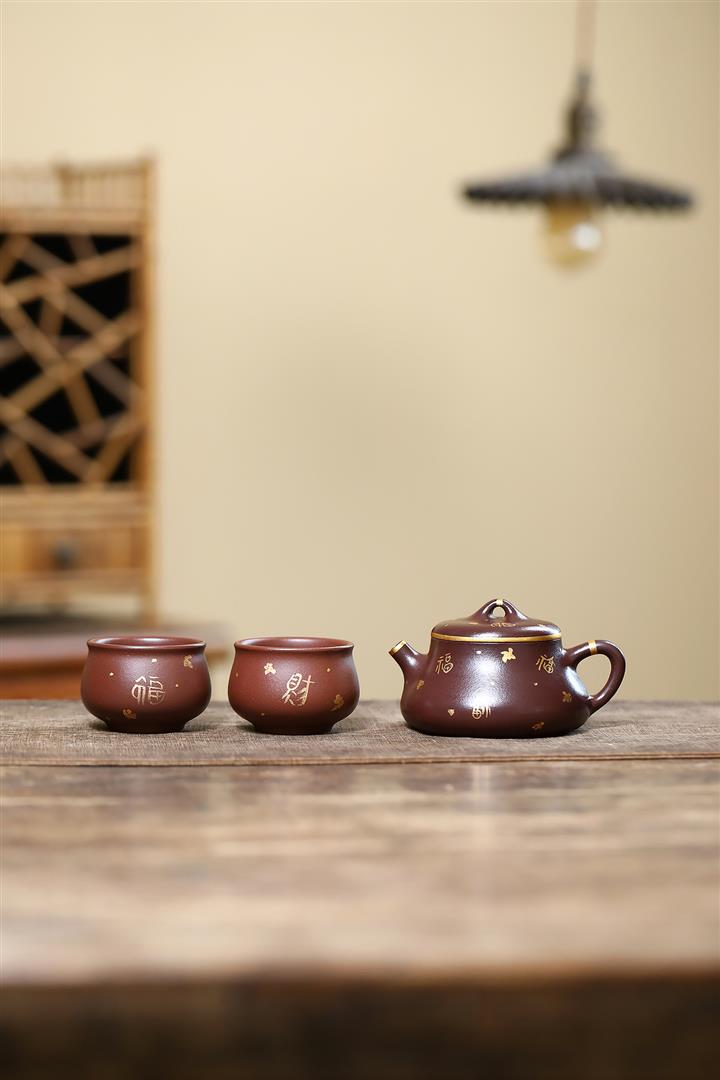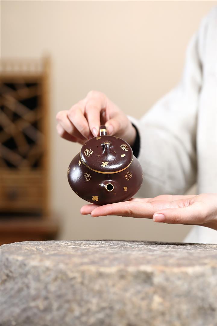 150cc原礦紫泥描金小蘊瓢壹壺兩杯茶壺POT9284