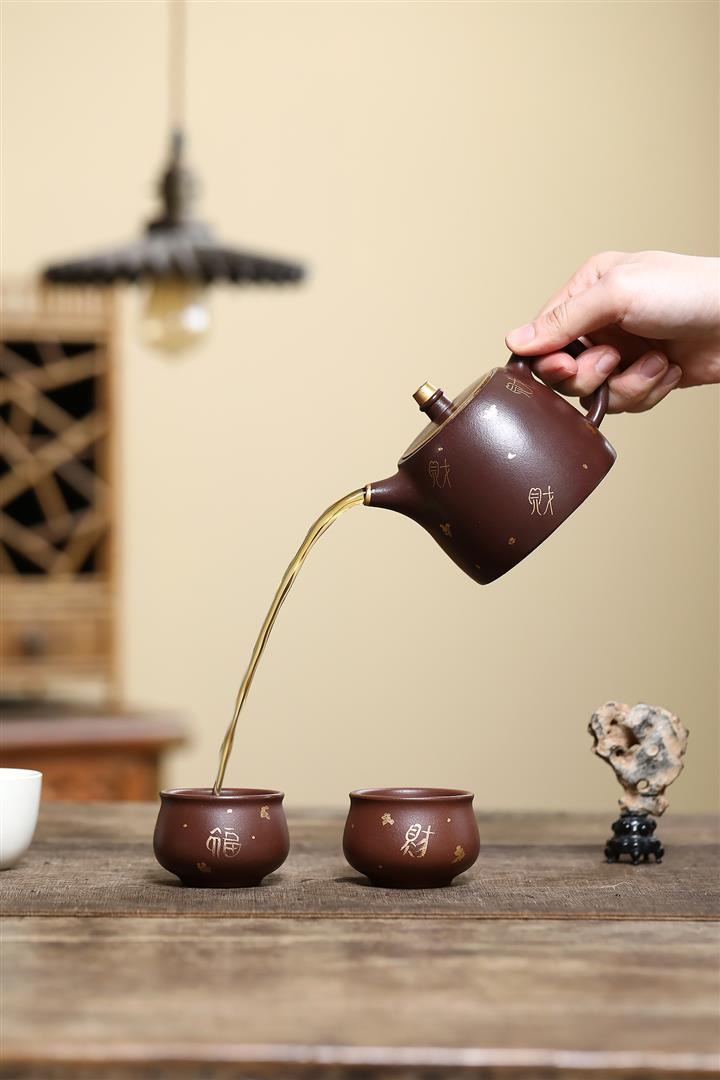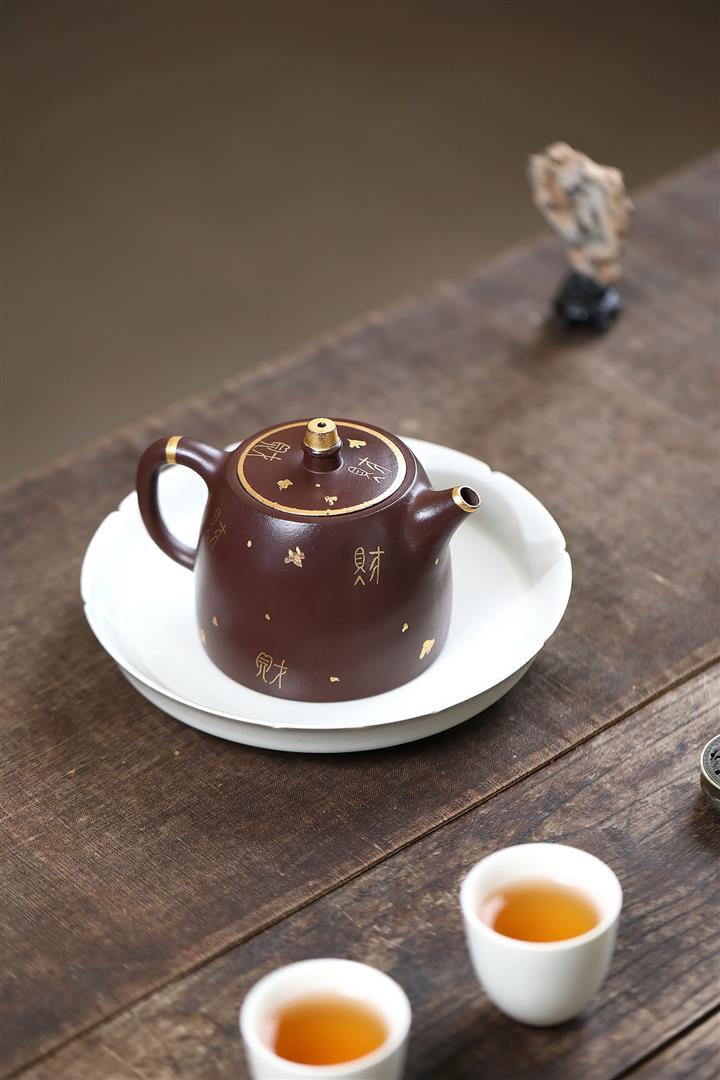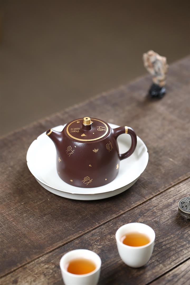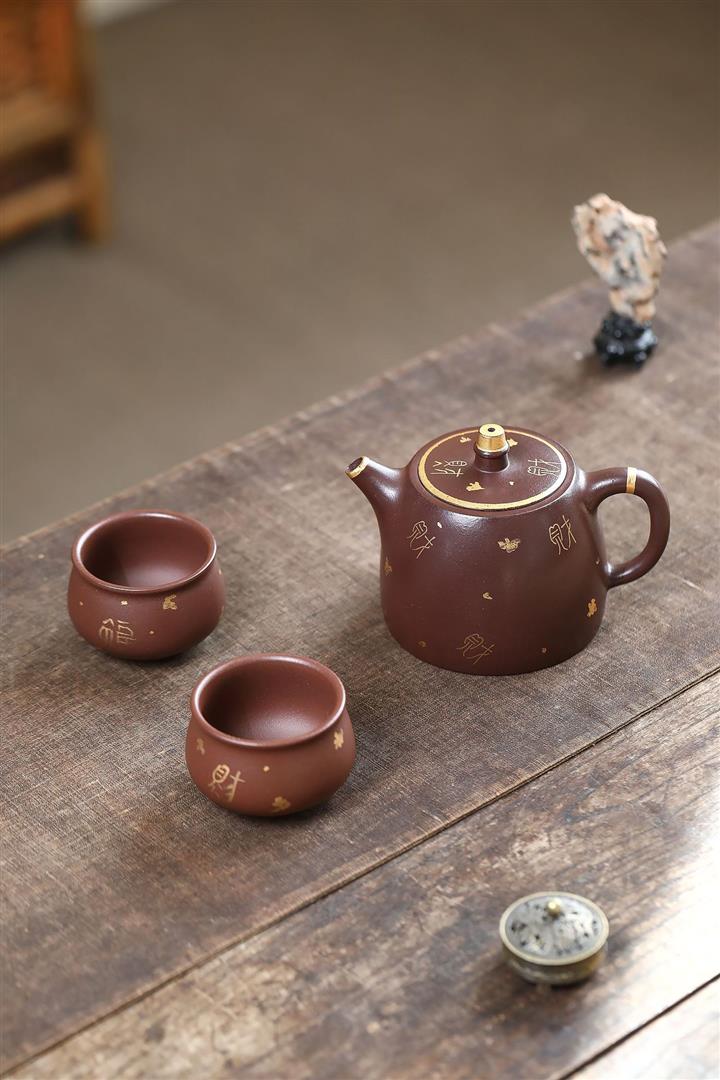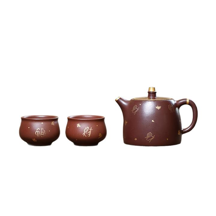 260cc原礦紫泥描金漢鐸壹壺兩杯茶壺POT9285
