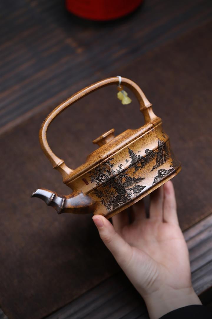350cc原礦龍骨金砂山水提梁泡茶壺POT9300