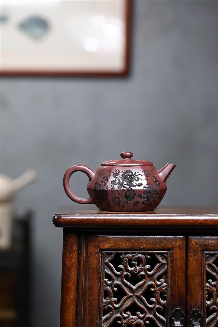 390cc原礦老紫泥六方福獅獻瑞茶壺POT9302