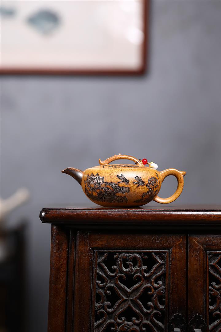 【作品介紹】此款壺形線條流暢,壺把,壺嘴,壺身壹氣呵成栩栩如生,是收藏把玩的好壺,泥料色澤古樸典雅,日久使用,漸露鋒芒,養成變化快,溫潤莊重,用其泡茶,使用的年代久,壺身就溫潤,泡出來的茶湯也就醇郁芳馨。