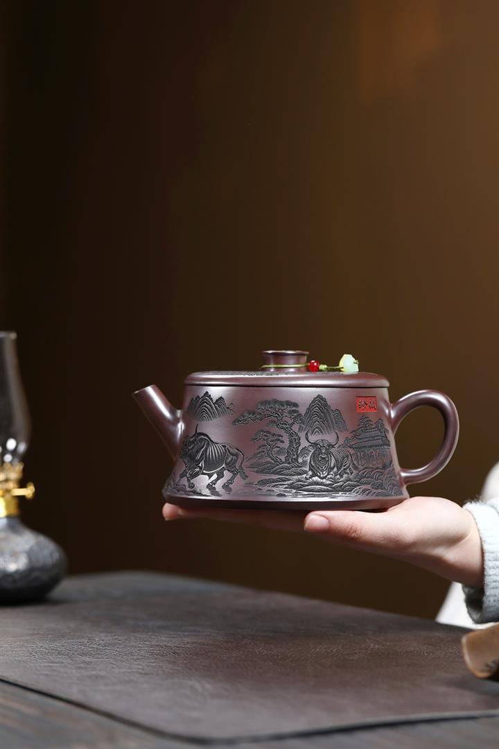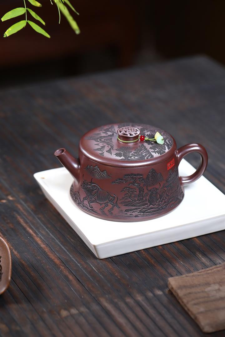 500cc原礦石紅泥五牛柱礎茶壺POT9322