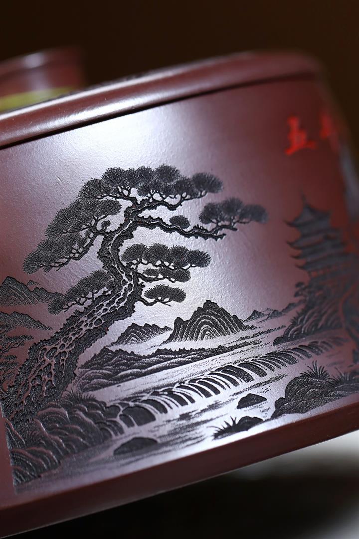 【泥料特點】砂土氣重,似淳實農民,日久使用,漸露鋒芒,養成變化,溫潤莊重。紫砂是壹種雙重氣孔結構的多孔性材質,氣孔微細,密度高。用紫砂壺沏茶,不失原味,且香不渙散,得茶之真香真味。紫砂使用越久,壺身色澤越發光亮照人,氣韻溫雅。紫砂壺長久使用器身會因撫摸擦拭,變得越發溫潤光澤。