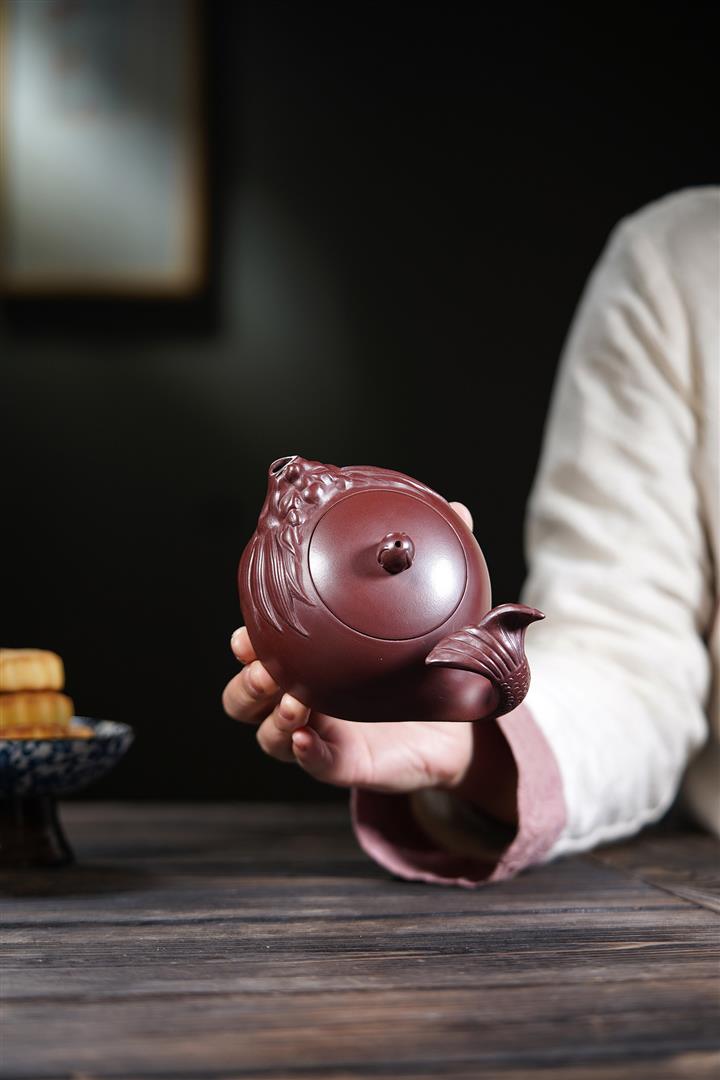 原礦朱泥摹清桑扁茶壺POT7712