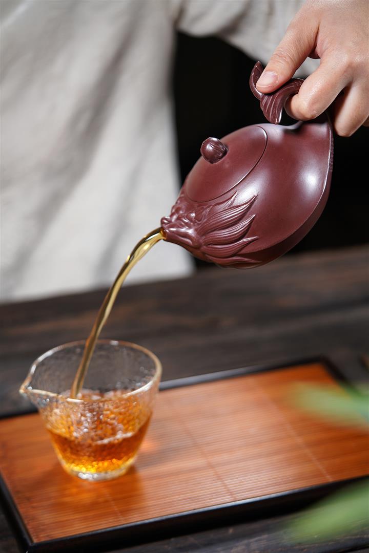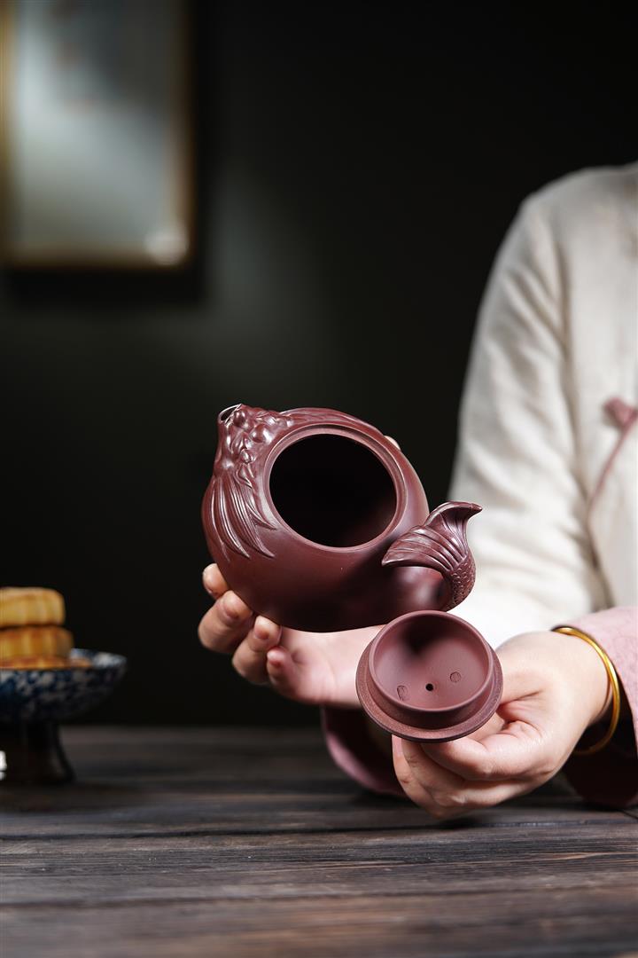 【泥料特點】砂土氣重,似淳實農民,日久使用,漸露鋒芒,養成變化,溫潤莊重。紫砂是壹種雙重氣孔結構的多孔性材質,氣孔微細,密度高。用紫砂壺沏茶,不失原味,且香不渙散,得茶之真香真味。紫砂使用越久,壺身色澤越發光亮照人,氣韻溫雅。紫砂壺長久使用器身會因撫摸擦拭,變得越發溫潤光澤。