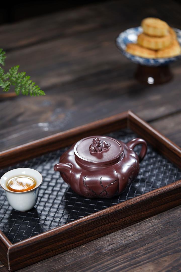 紫朱泥周盤紫砂壺POT5675