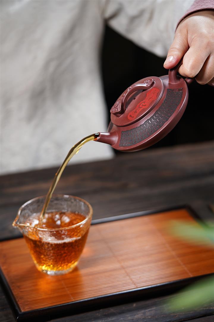 【泥料特點】砂土氣重,似淳實農民,日久使用,漸露鋒芒,養成變化,溫潤莊重。紫砂是壹種雙重氣孔結構的多孔性材質,氣孔微細,密度高。用紫砂壺沏茶,不失原味,且香不渙散,得茶之真香真味。紫砂使用越久,壺身色澤越發光亮照人,氣韻溫雅。紫砂壺長久使用器身會因撫摸擦拭,變得越發溫潤光澤。