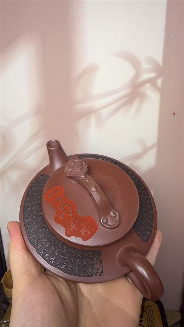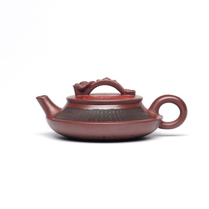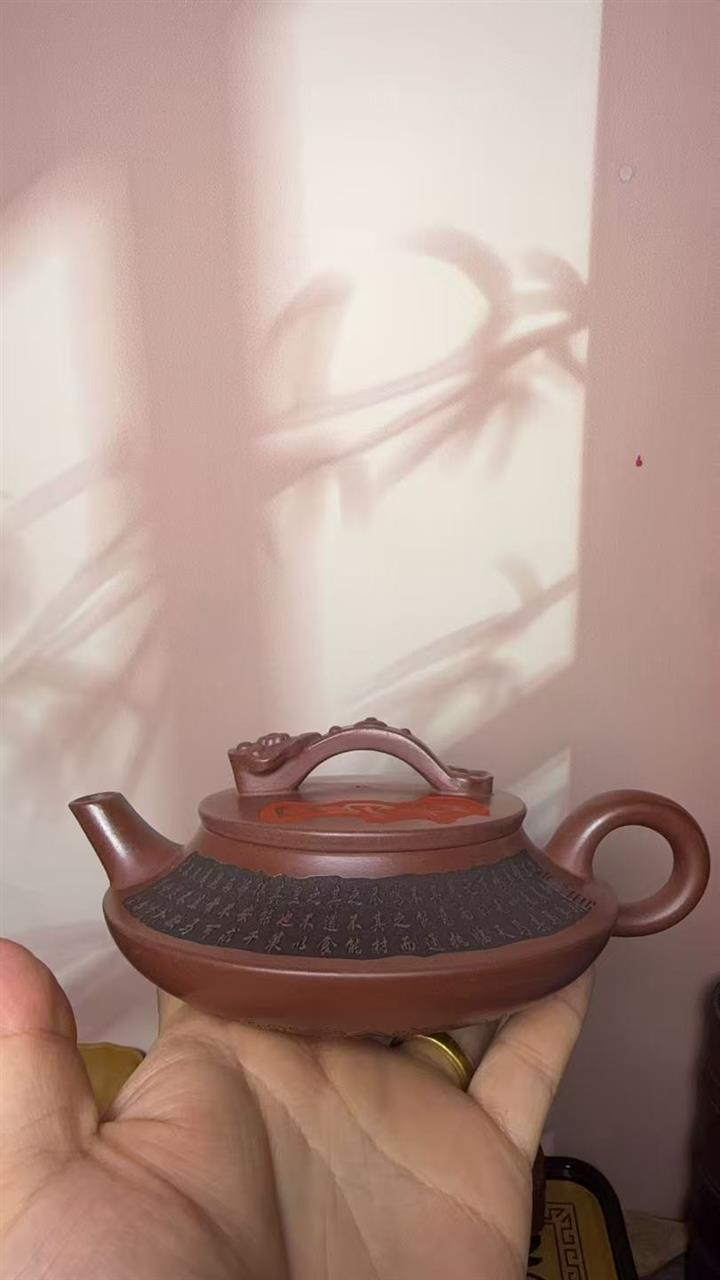 原礦紫泥手工刻字畫馬上封侯四方壺POT6737