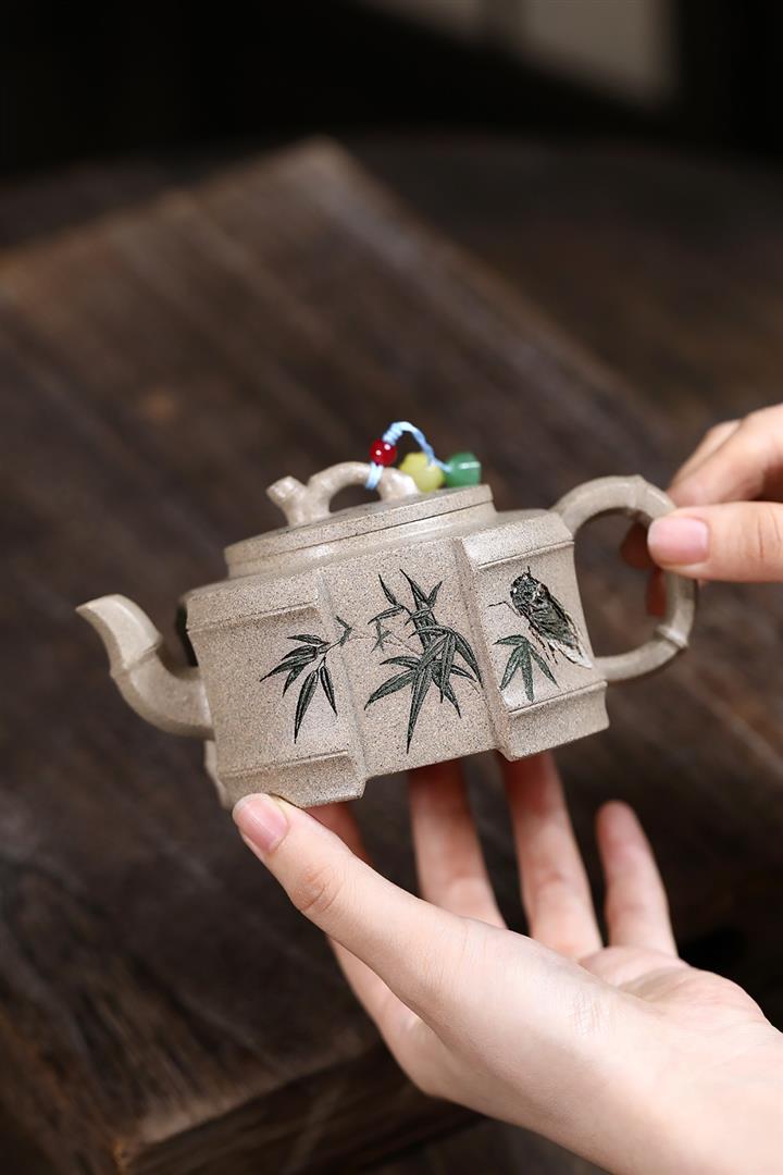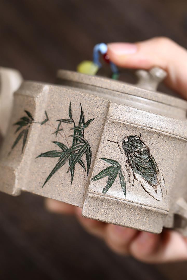 250cc原礦白段泥方器竹蟬問禪茶壺POT9347