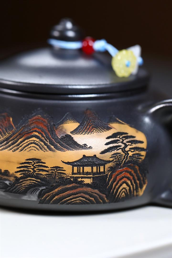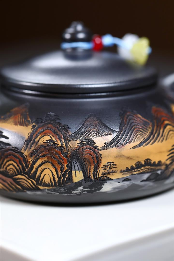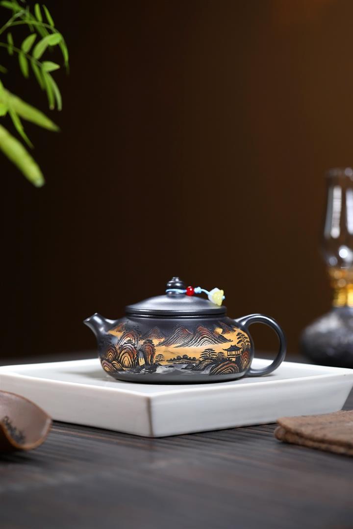 240cc原礦玄鐵石黃錦繡寒江茶壺POT9348
