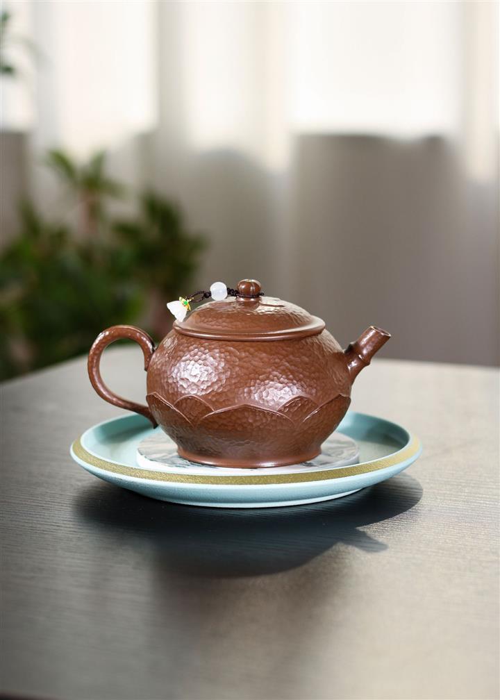 250cc原礦文革紫泥錘紋蓮花圓珠泡茶壺POT9357