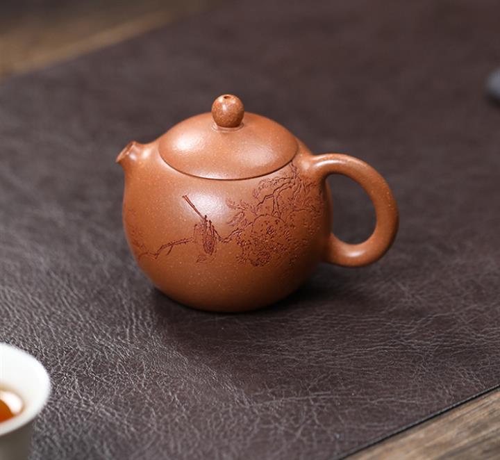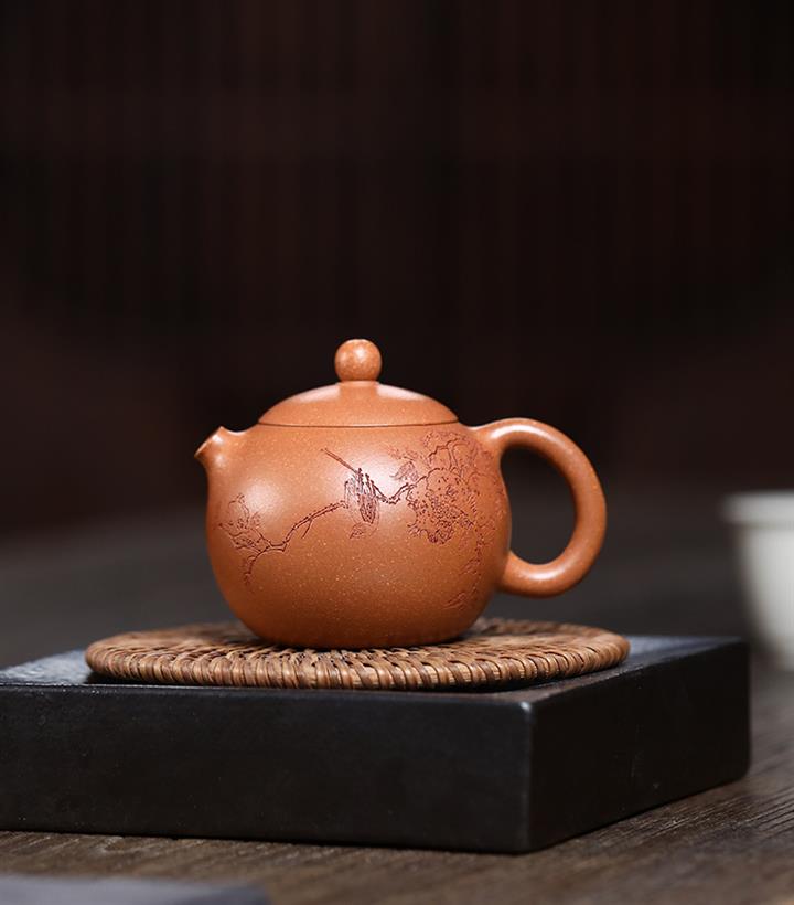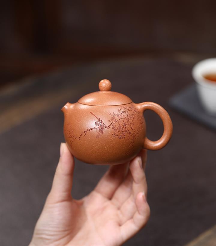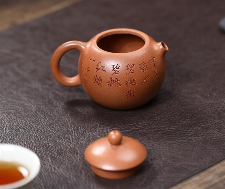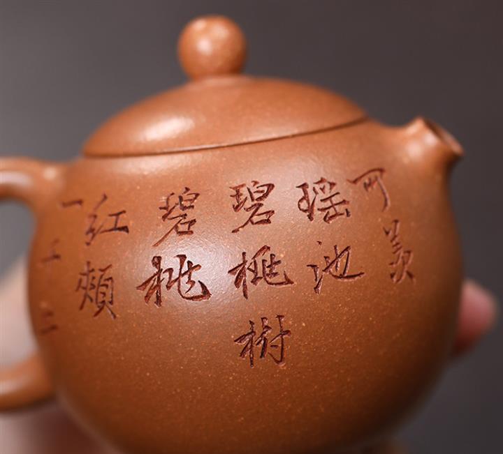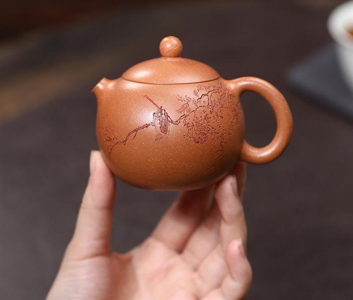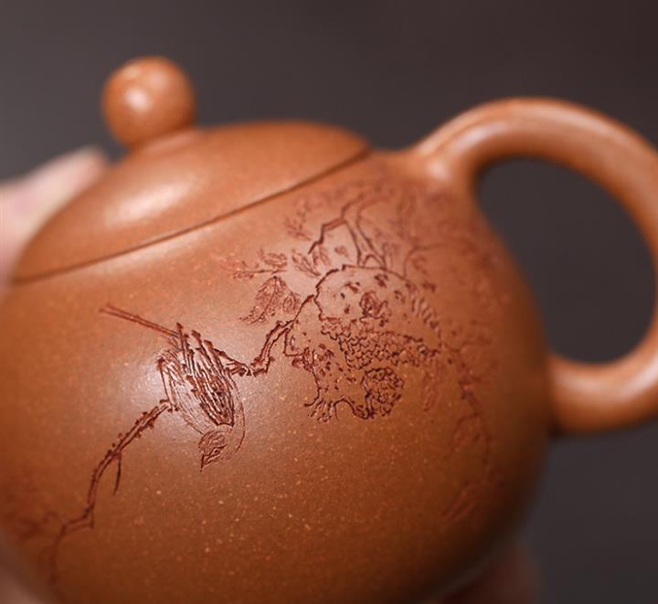 原礦紫泥刻繪石瓢紫砂壺POT4752