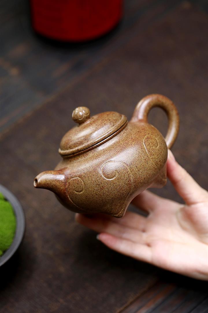 原礦鐵血紅砂手工三足龍尊茶壺POT6733