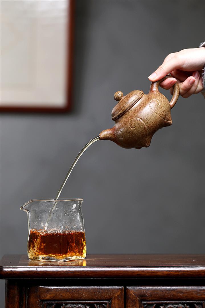 【泥料特點】砂土氣重,似淳實農民,日久使用,漸露鋒芒,養成變化,溫潤莊重。紫砂是壹種雙重氣孔結構的多孔性材質,氣孔微細,密度高。用紫砂壺沏茶,不失原味,且香不渙散,得茶之真香真味。紫砂使用越久,壺身色澤越發光亮照人,氣韻溫雅。紫砂壺長久使用器身會因撫摸擦拭,變得越發溫潤光澤。