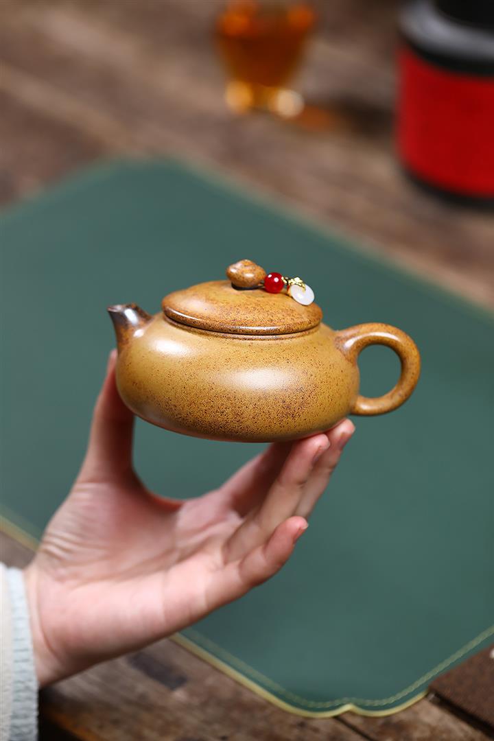 【作品介紹】此款壺形線條流暢,壺把,壺嘴,壺身壹氣呵成栩栩如生,是收藏把玩的好壺,泥料色澤古樸典雅,日久使用,漸露鋒芒,養成變化快,溫潤莊重,用其泡茶,使用的年代久,壺身就溫潤,泡出來的茶湯也就醇郁芳馨。