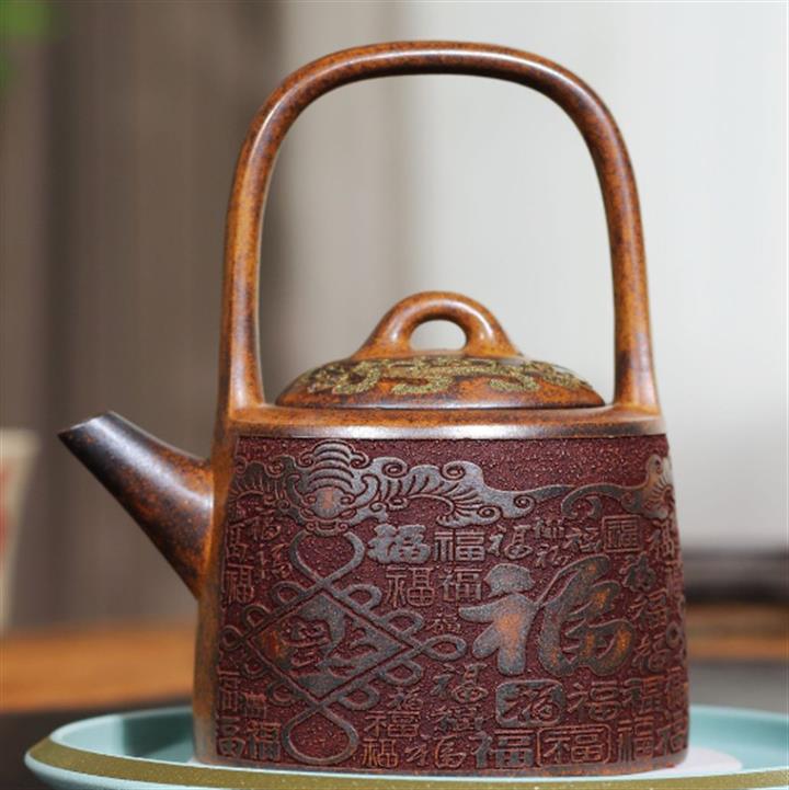 290cc原礦龍骨金砂百福鳳鳴提梁茶壺POT9415