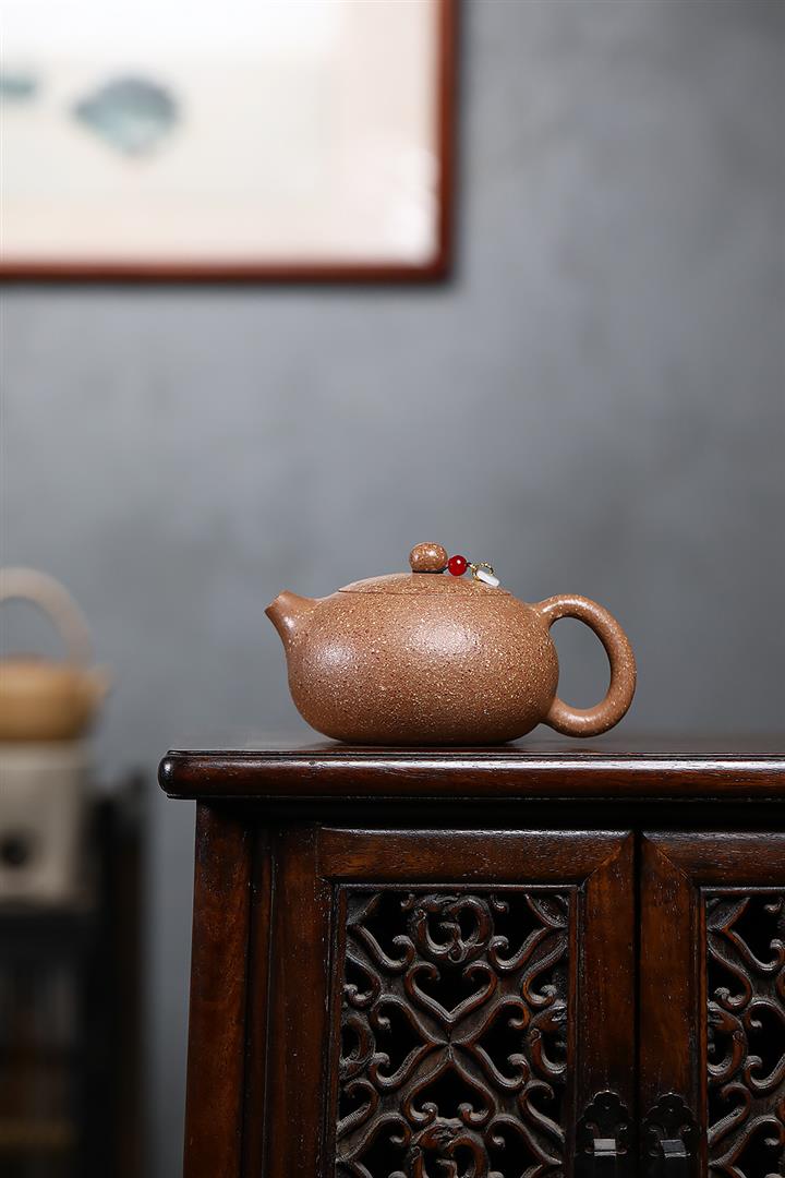 【作品介紹】此款壺形線條流暢,壺把,壺嘴,壺身壹氣呵成栩栩如生,是收藏把玩的好壺,泥料色澤古樸典雅,日久使用,漸露鋒芒,養成變化快,溫潤莊重,用其泡茶,使用的年代久,壺身就溫潤,泡出來的茶湯也就醇郁芳馨。