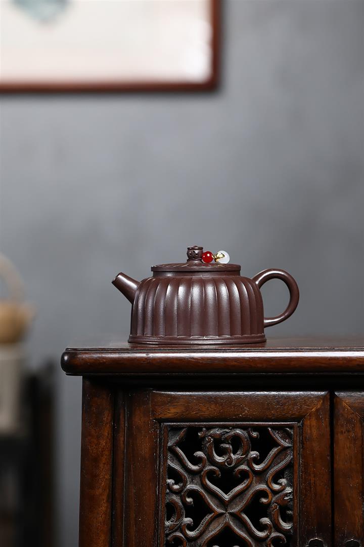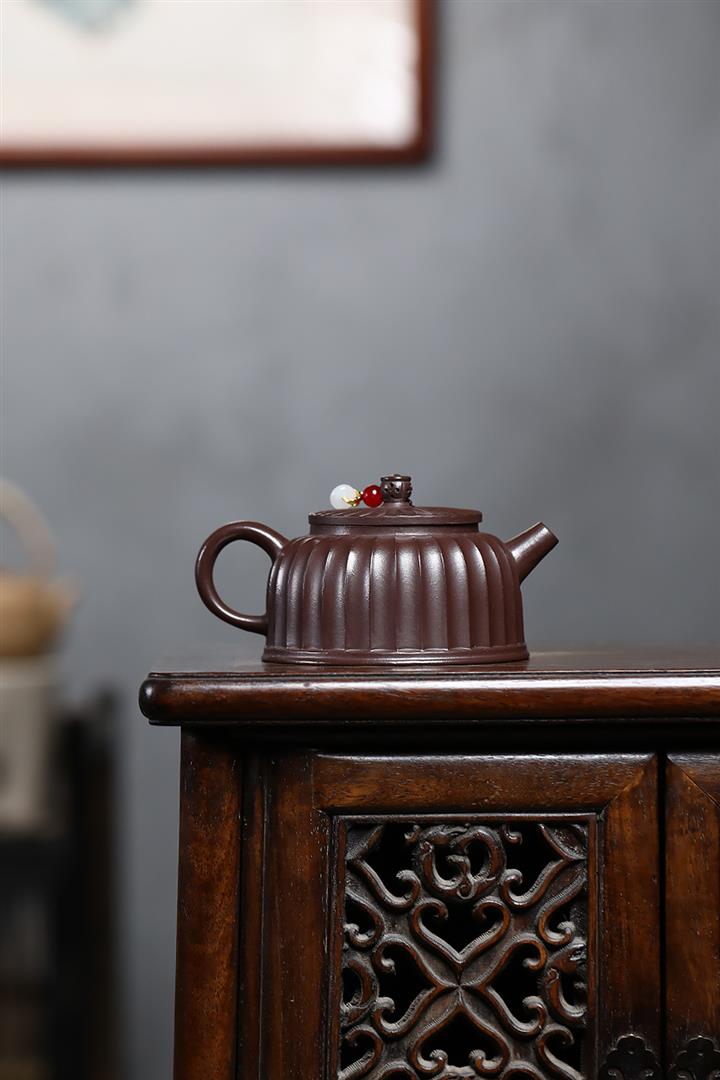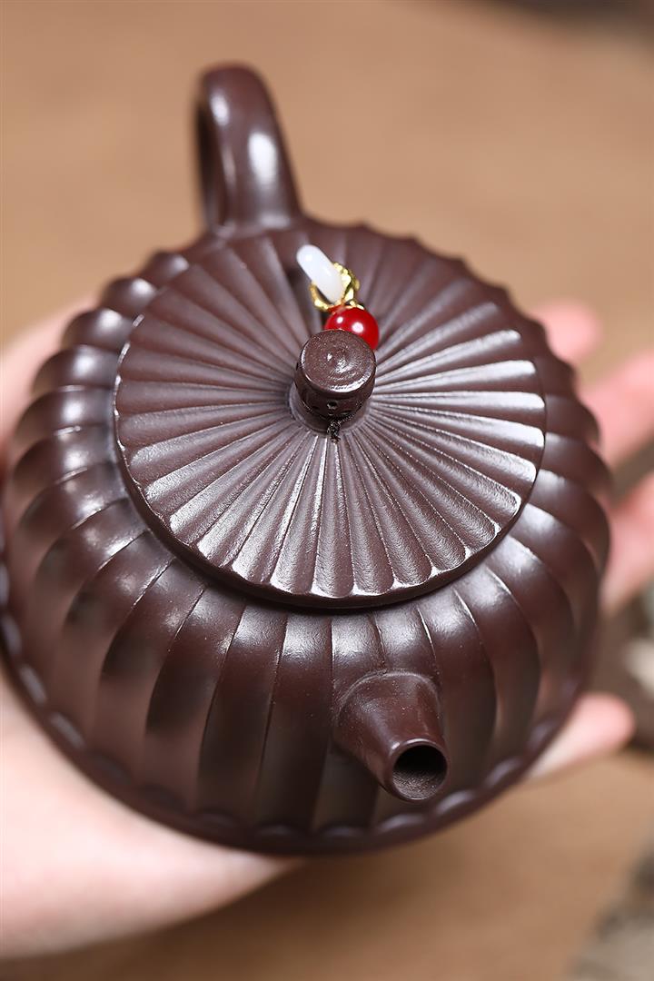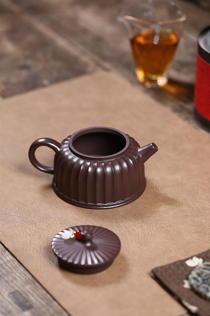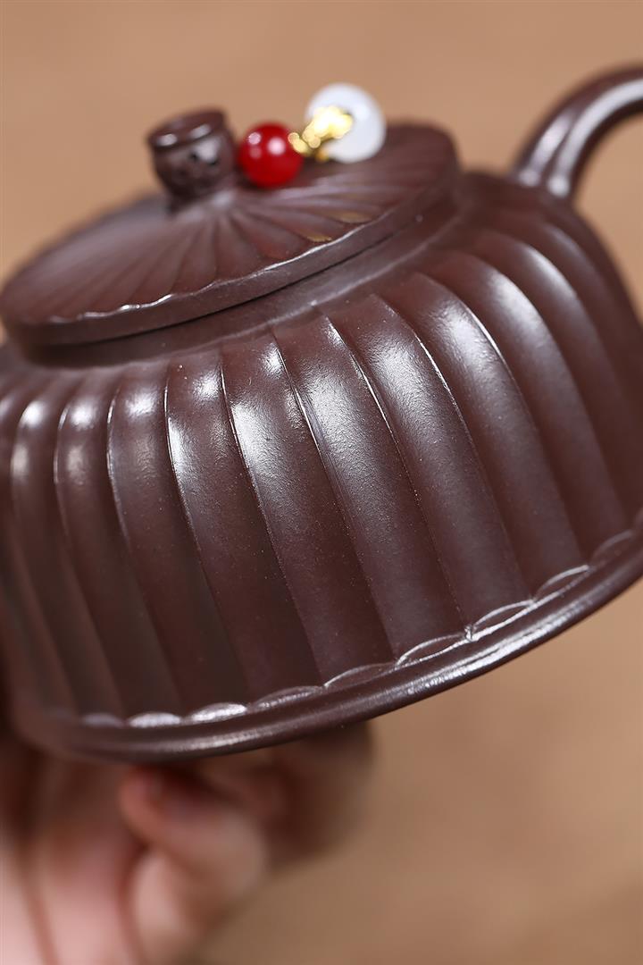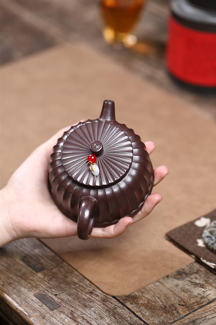 250cc原礦紫泥鏤空筋紋德鐘泡茶壺POT9417