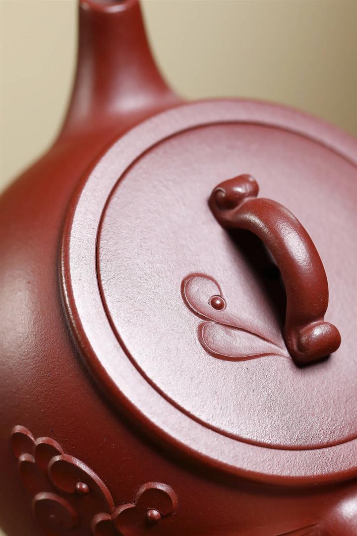 230cc原礦紫泥滿刻寬圓丹羽壺POT8097