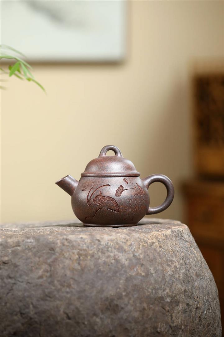 大紅袍還原燒漢瓦紫砂壺POT5740
