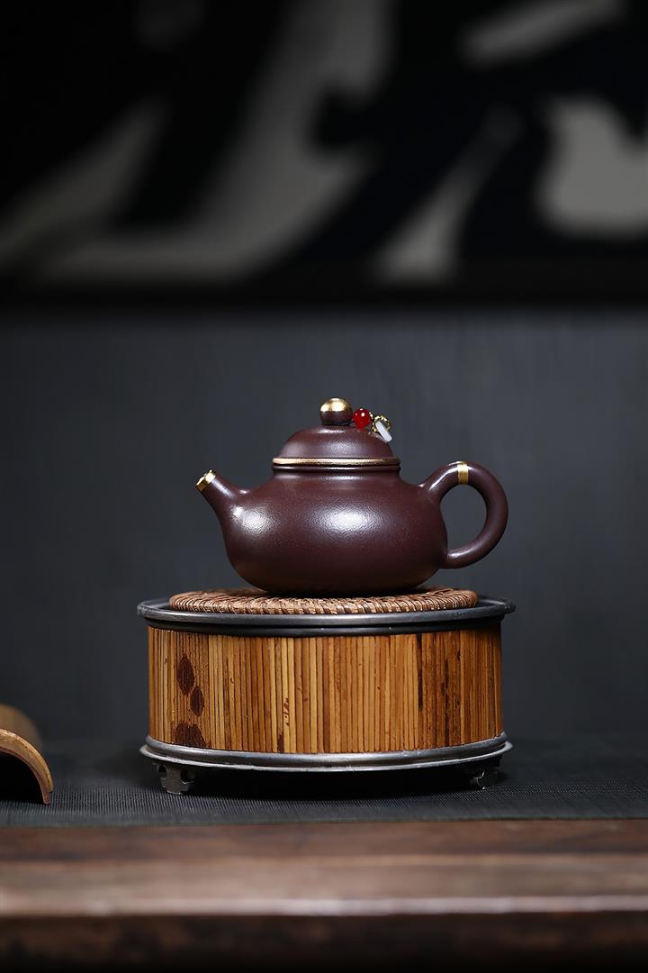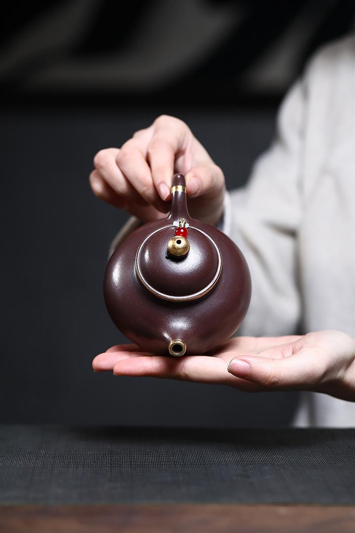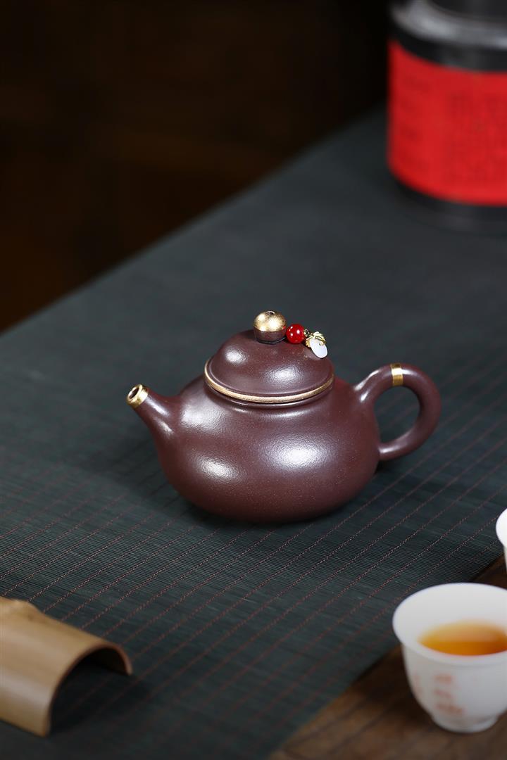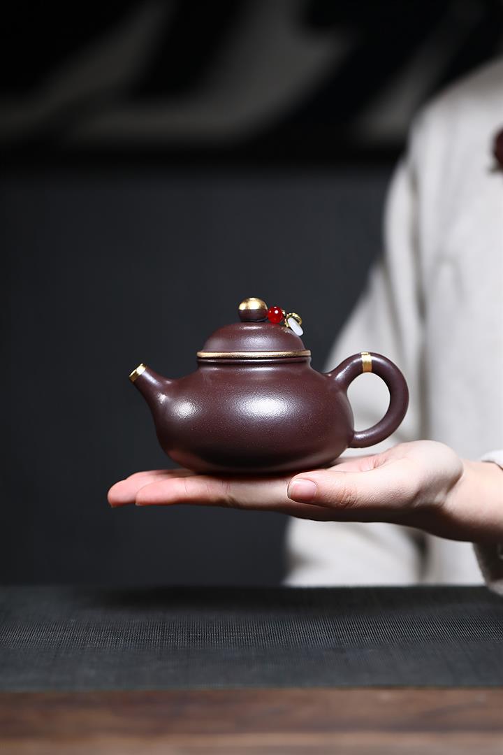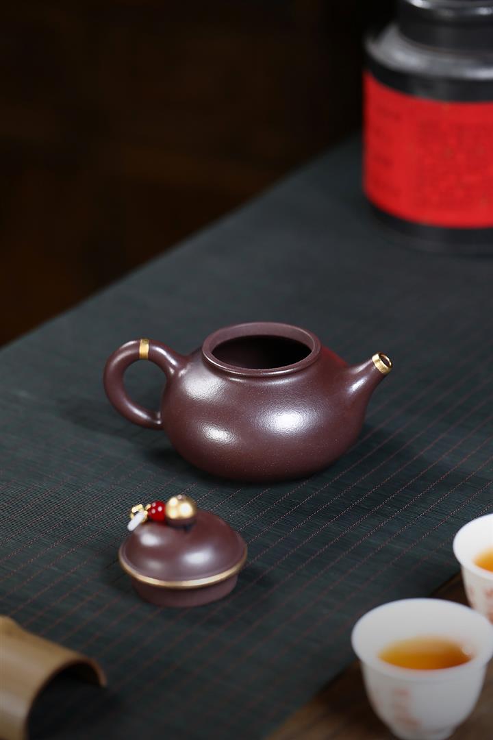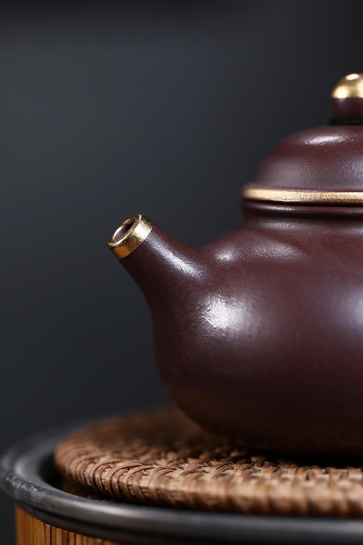 230cc原礦紫泥鑲金容天光素泡茶壺POT9474