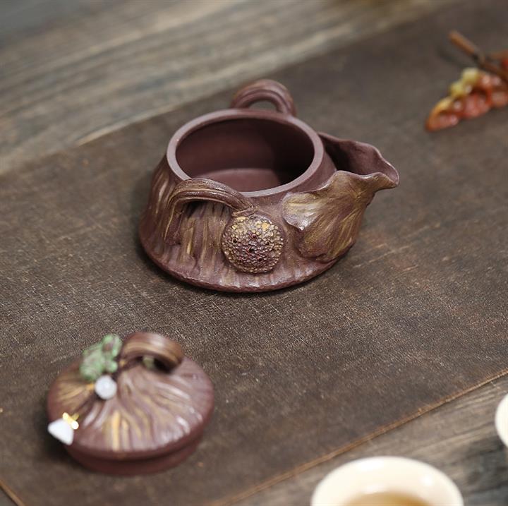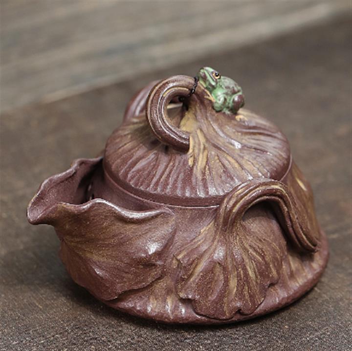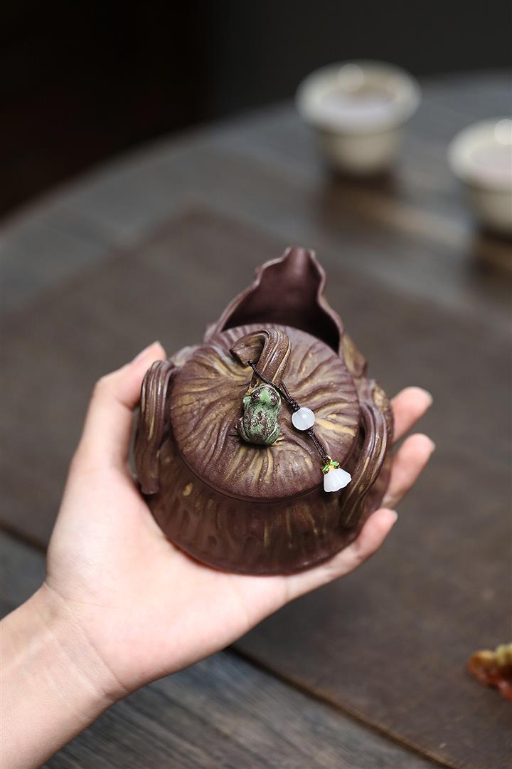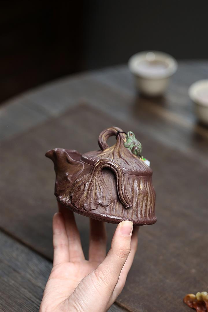 190cc原礦紫泥//段泥青蛙蓮子手抓壺茶壺POT9475