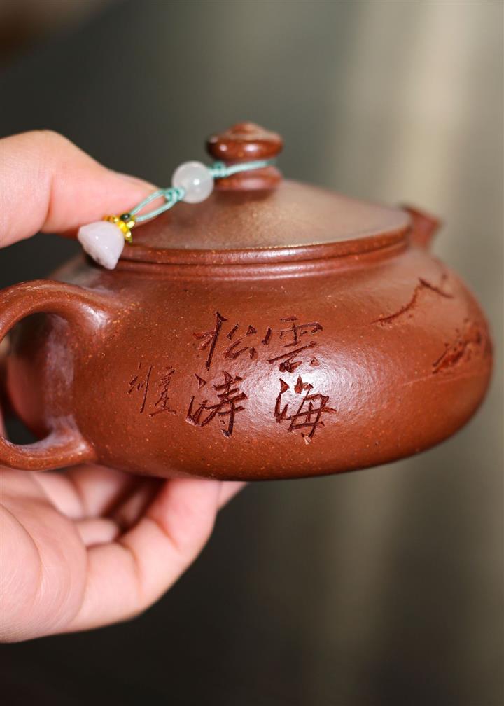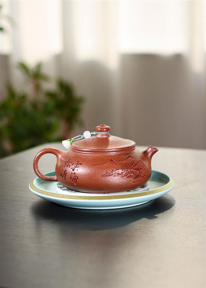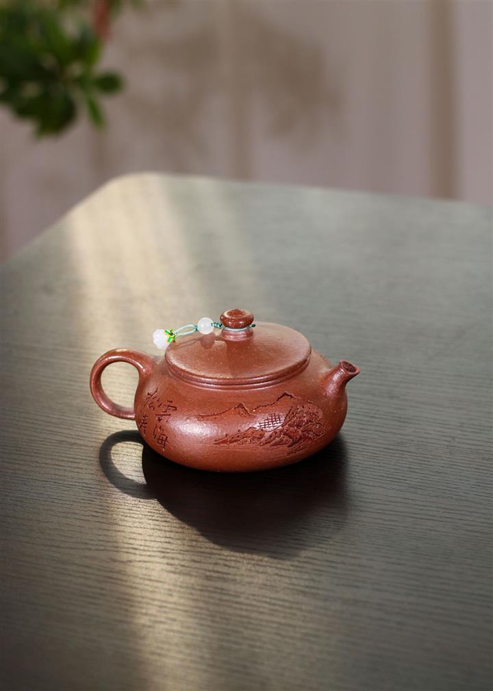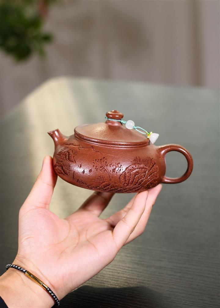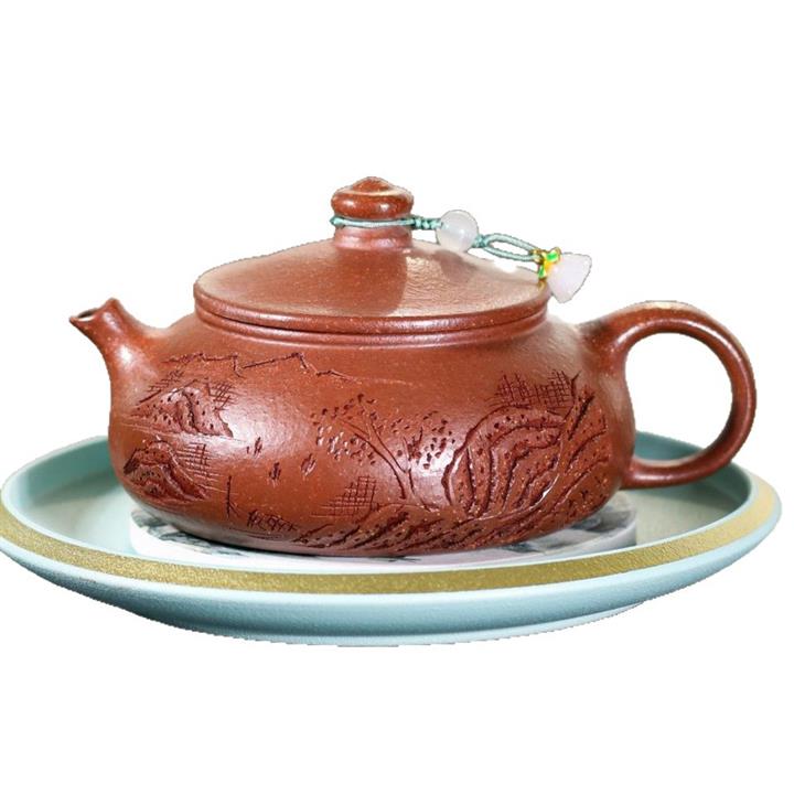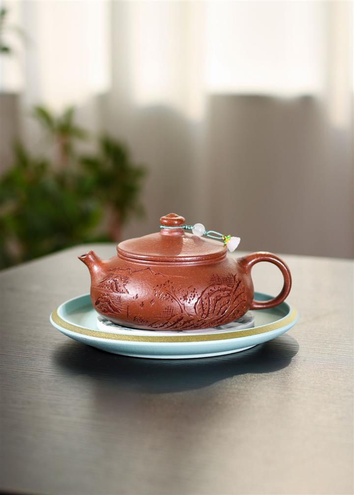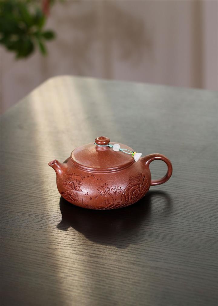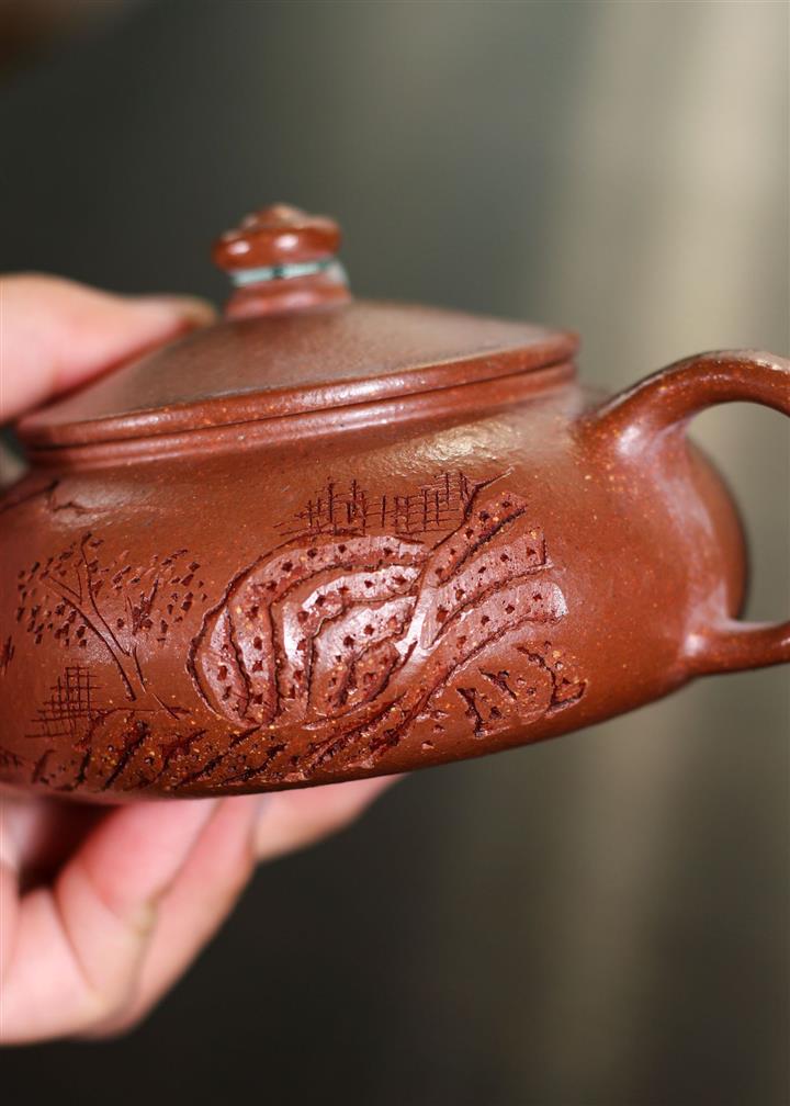 230cc原礦紫泥刻繪山水寒江泡茶壺POT9476