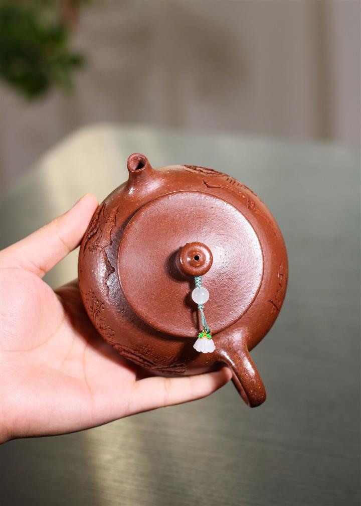 原礦紫泥梅花刻繪珠圓玉潤茶壺POT7397