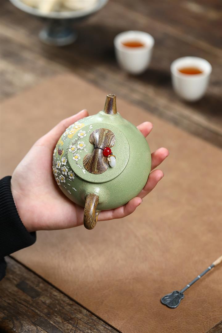 原礦優質綠泥手工蓮蓬汲直茶壺POT6841