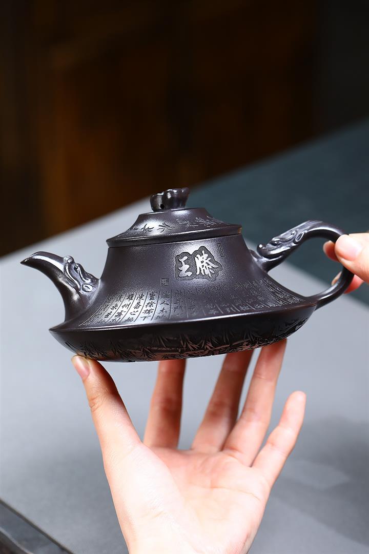 【作品介紹】此款壺形線條流暢,壺把,壺嘴,壺身壹氣呵成栩栩如生,是收藏把玩的好壺,泥料色澤古樸典雅,日久使用,漸露鋒芒,養成變化快,溫潤莊重,用其泡茶,使用的年代久,壺身就溫潤,泡出來的茶湯也就醇郁芳馨。