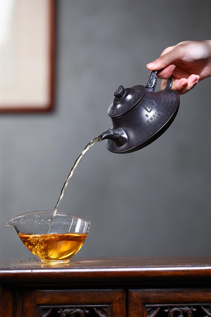 【泥料特點】砂土氣重,似淳實農民,日久使用,漸露鋒芒,養成變化,溫潤莊重。紫砂是壹種雙重氣孔結構的多孔性材質,氣孔微細,密度高。用紫砂壺沏茶,不失原味,且香不渙散,得茶之真香真味。紫砂使用越久,壺身色澤越發光亮照人,氣韻溫雅。紫砂壺長久使用器身會因撫摸擦拭,變得越發溫潤光澤。