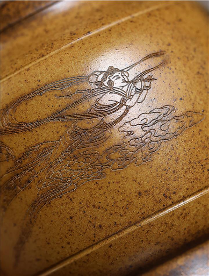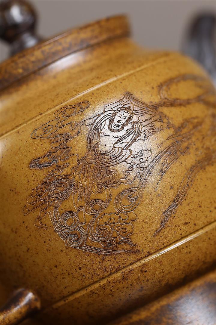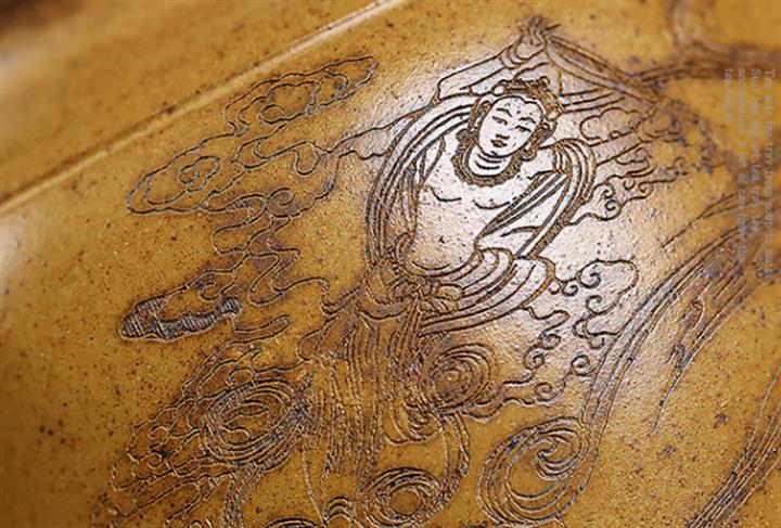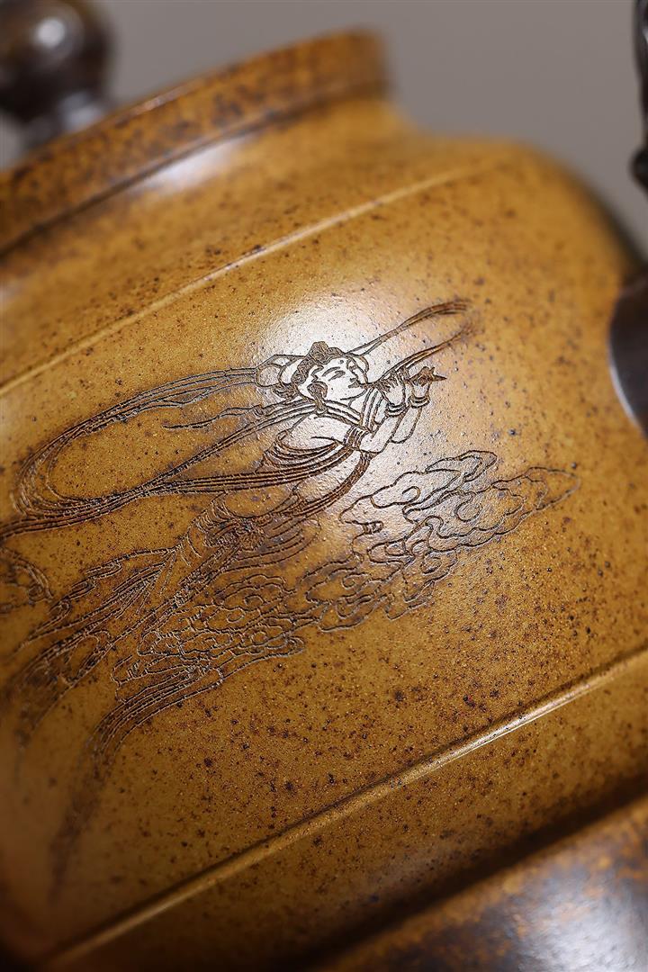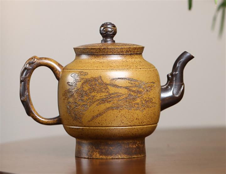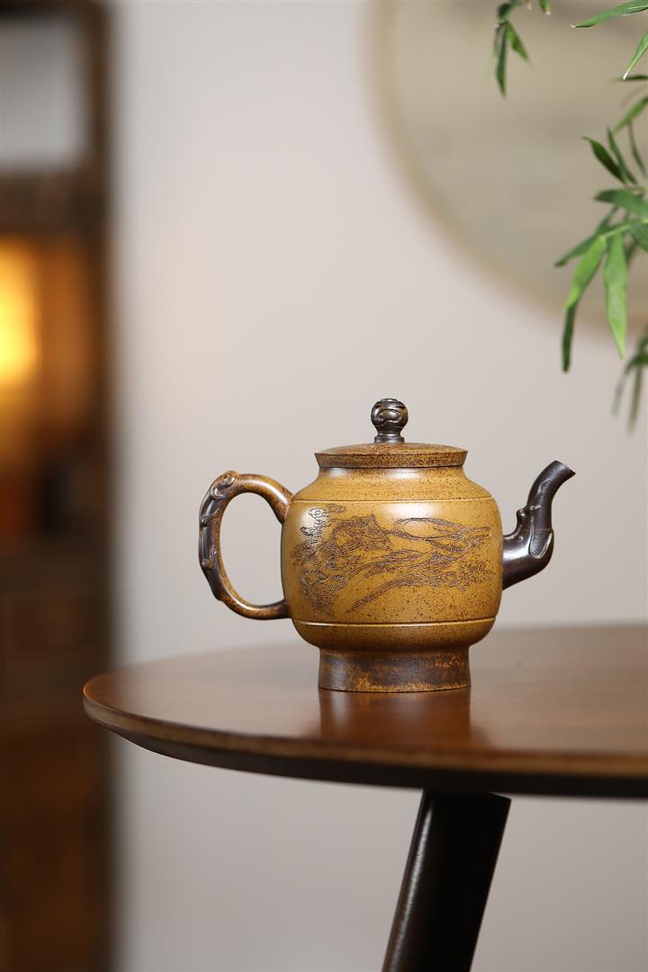 原礦紫砂君子蘭刻繪漢鐸茶壺POT7517