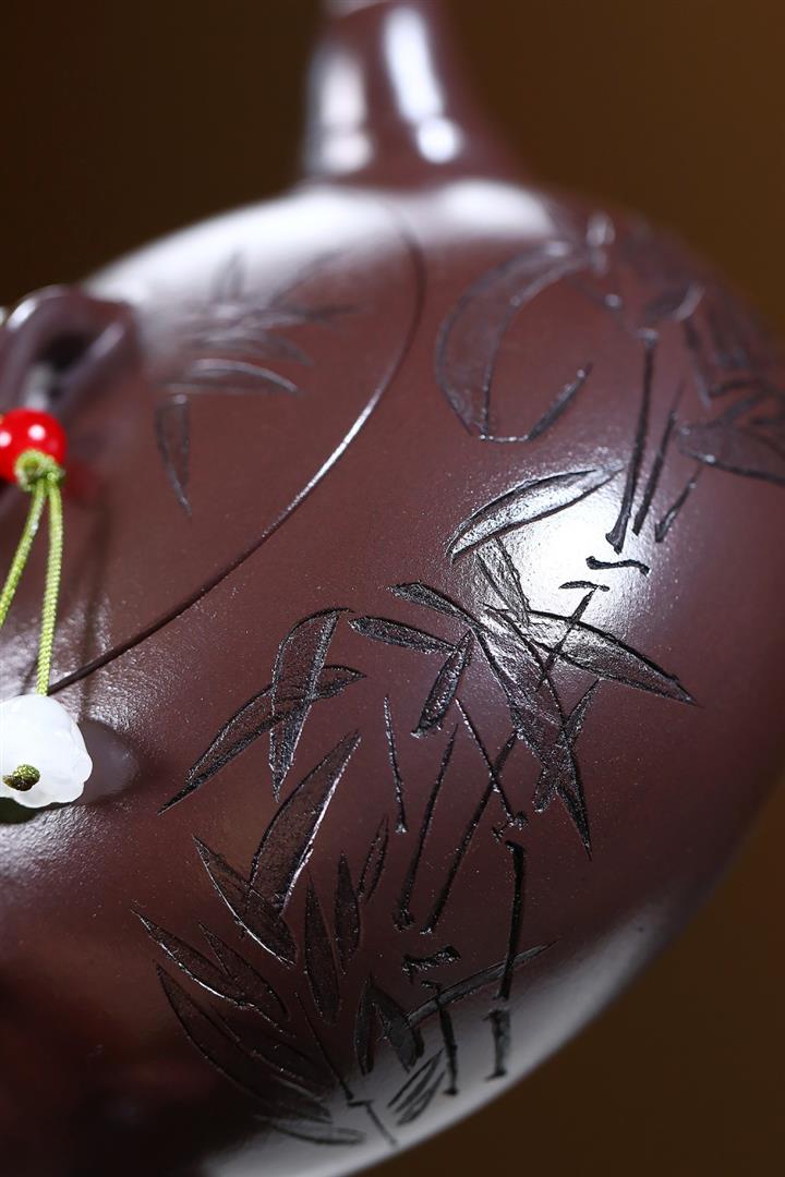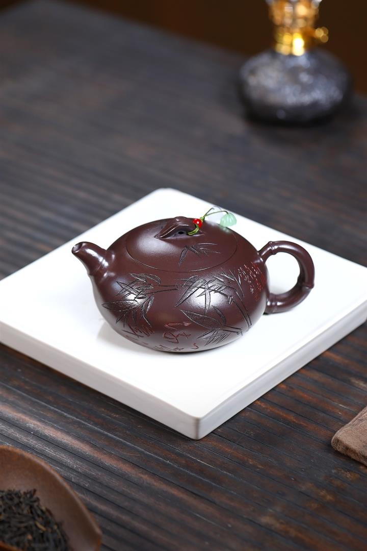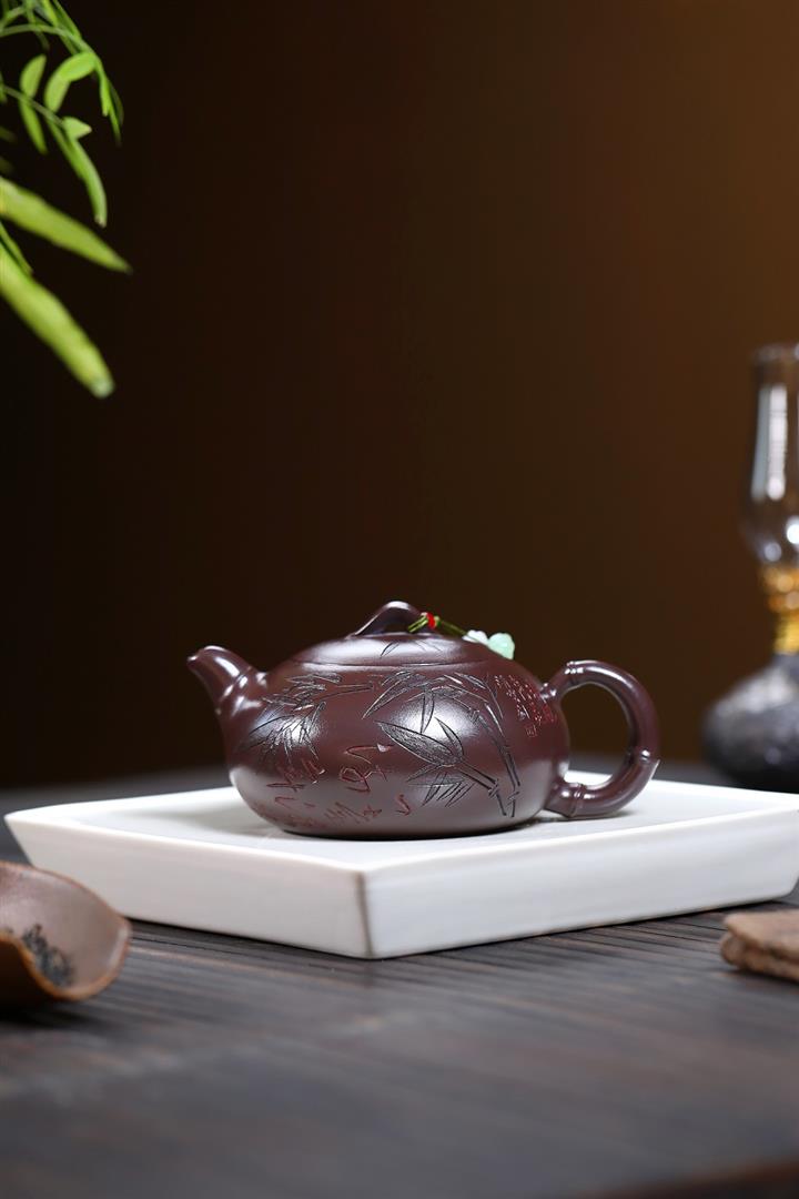 300cc原礦紫朱泥勁竹圓瓦泡茶壺POT9521