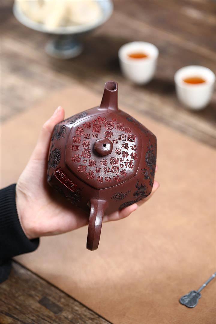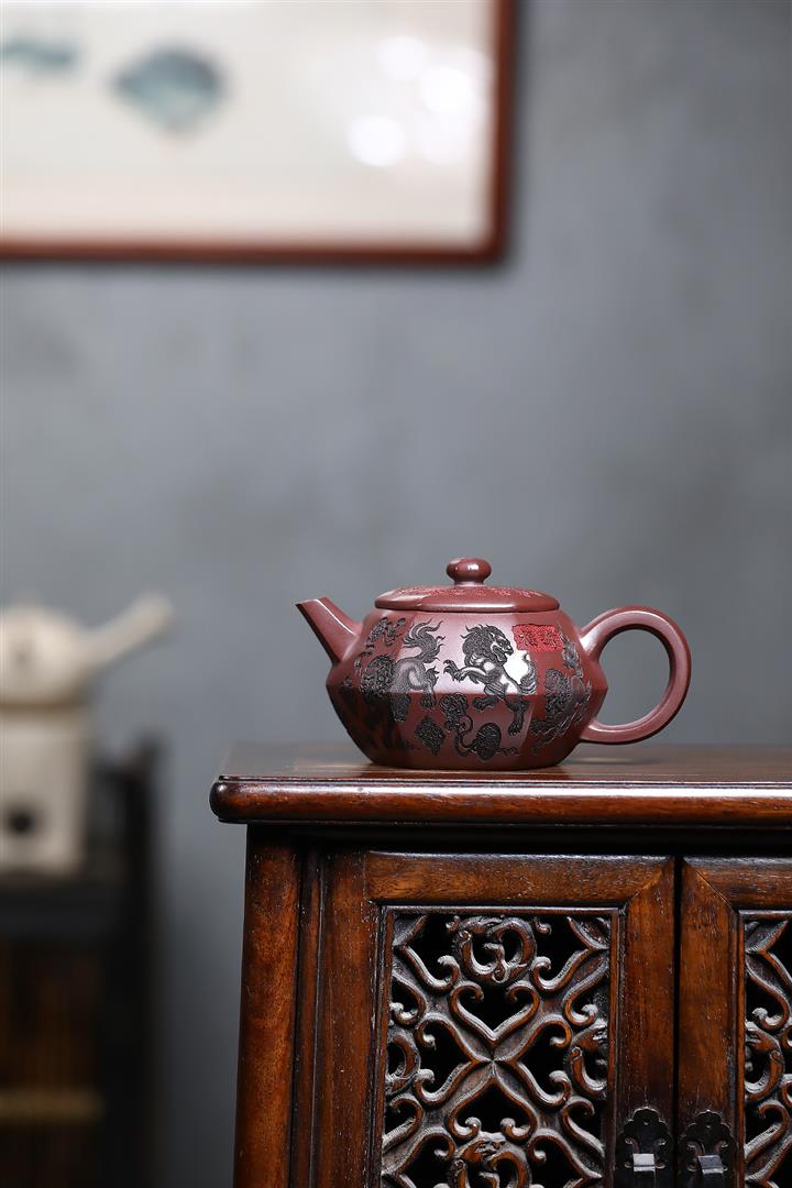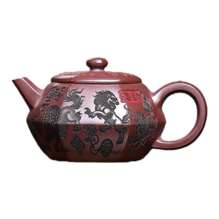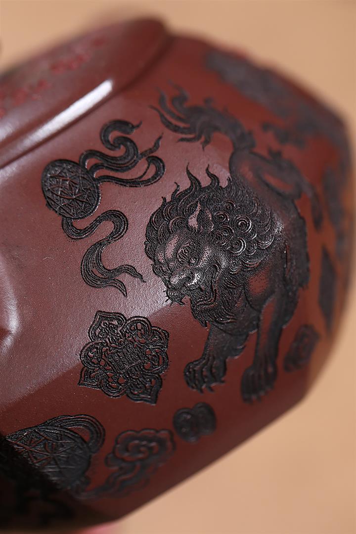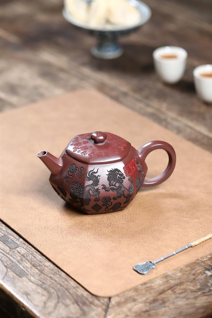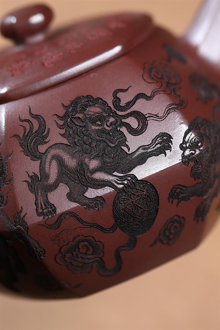 390cc原礦老紫泥六方福獅獻瑞茶壺POT9525