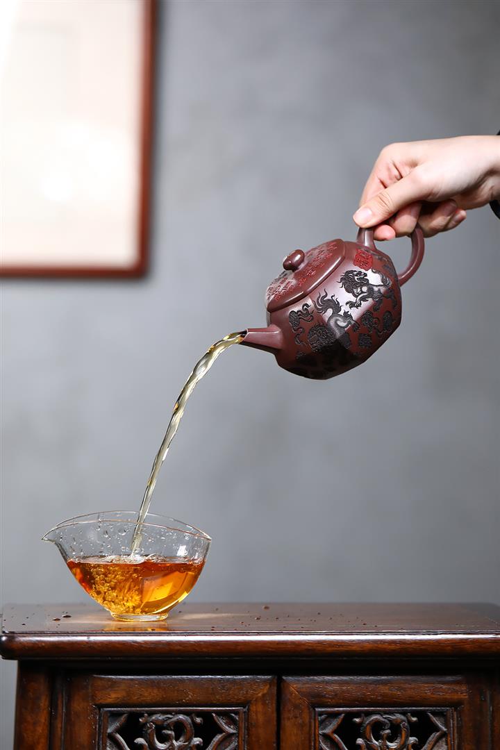 【泥料特點】砂土氣重,似淳實農民,日久使用,漸露鋒芒,養成變化,溫潤莊重。紫砂是壹種雙重氣孔結構的多孔性材質,氣孔微細,密度高。用紫砂壺沏茶,不失原味,且香不渙散,得茶之真香真味。紫砂使用越久,壺身色澤越發光亮照人,氣韻溫雅。紫砂壺長久使用器身會因撫摸擦拭,變得越發溫潤光澤。