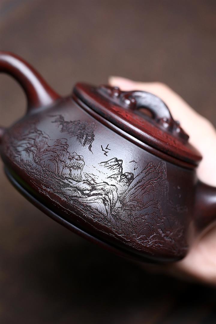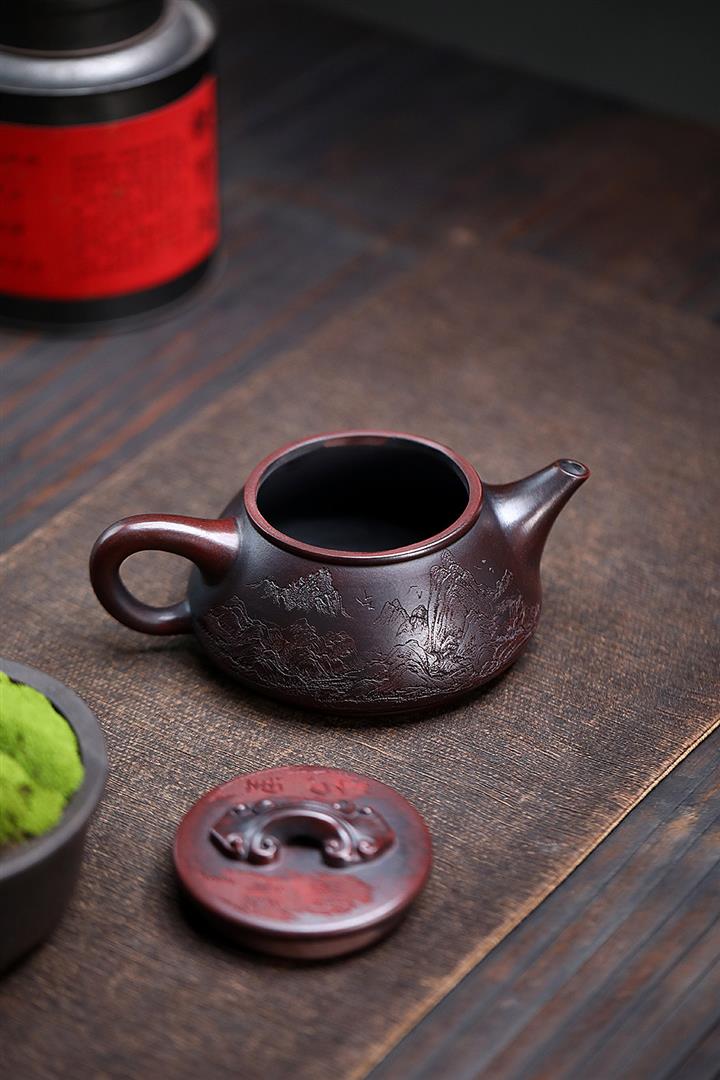 180cc原礦黑泥刻繪觀雲聽雨泡茶壺POT9716