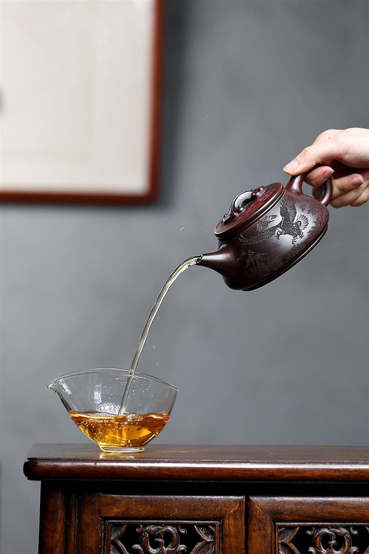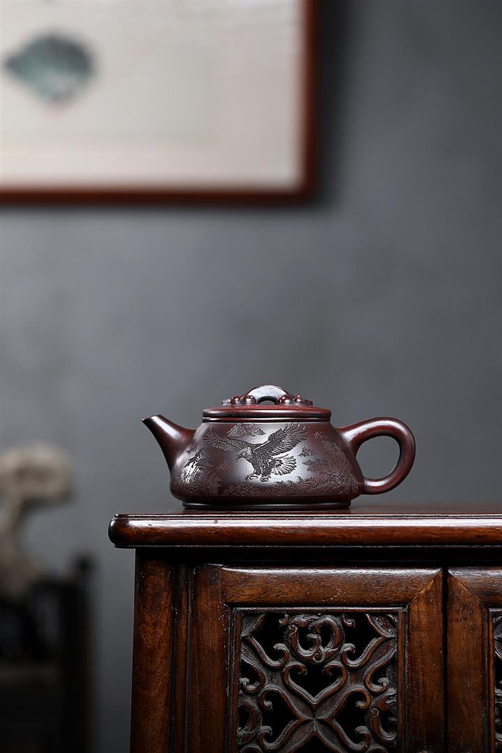 【泥料特點】砂土氣重,似淳實農民,日久使用,漸露鋒芒,養成變化,溫潤莊重。紫砂是壹種雙重氣孔結構的多孔性材質,氣孔微細,密度高。用紫砂壺沏茶,不失原味,且香不渙散,得茶之真香真味。紫砂使用越久,壺身色澤越發光亮照人,氣韻溫雅。紫砂壺長久使用器身會因撫摸擦拭,變得越發溫潤光澤。