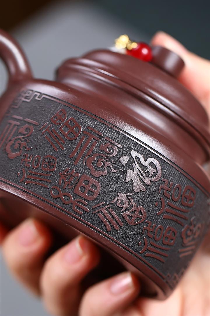 230cc原礦紫泥刻繪百福德鐘泡茶壺POT9529