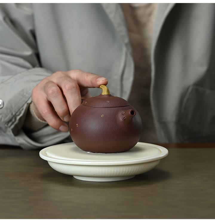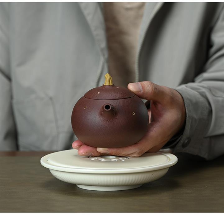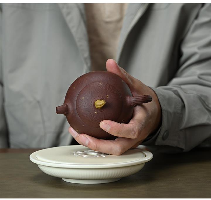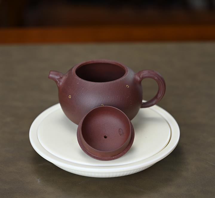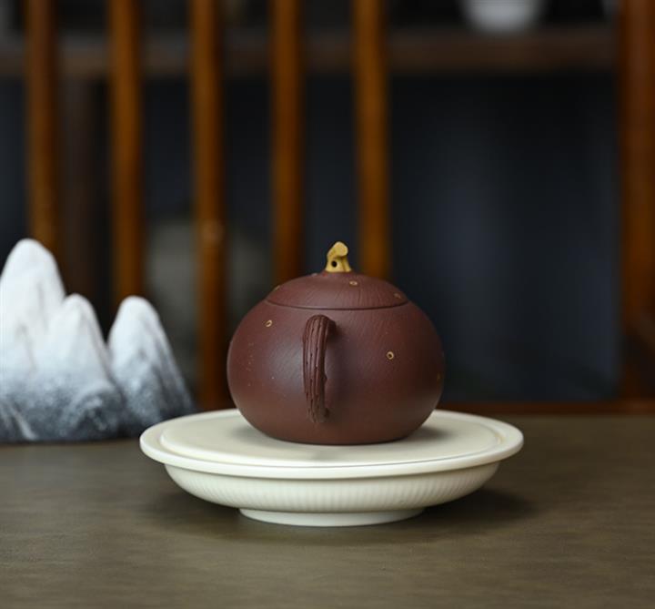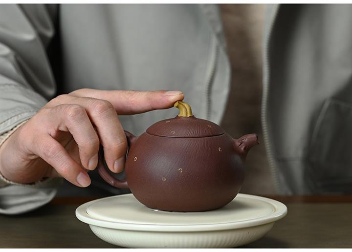 【泥料特點】砂土氣重,似淳實農民,日久使用,漸露鋒芒,養成變化,溫潤莊重。紫砂是壹種雙重氣孔結構的多孔性材質,氣孔微細,密度高。用紫砂壺沏茶,不失原味,且香不渙散,得茶之真香真味。紫砂使用越久,壺身色澤越發光亮照人,氣韻溫雅。紫砂壺長久使用器身會因撫摸擦拭,變得越發溫潤光澤。