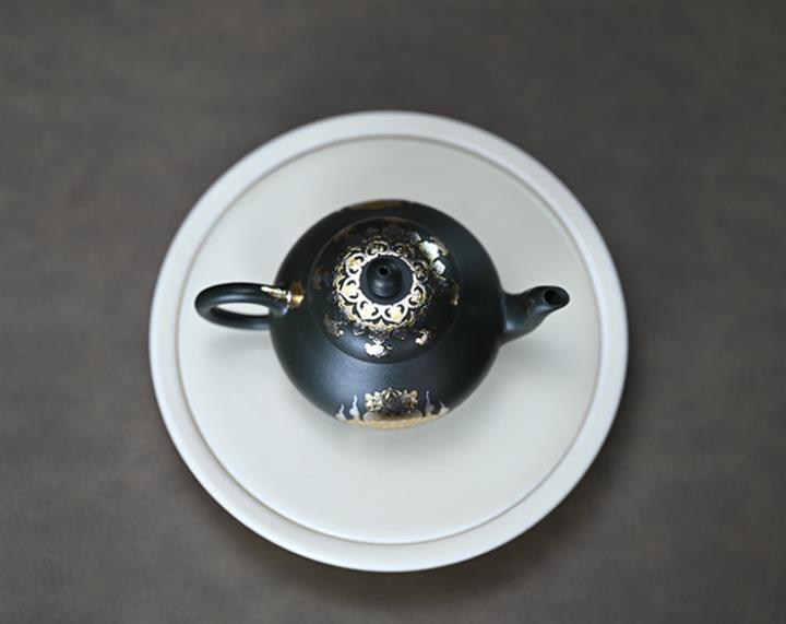 150cc原礦墨綠泥貼金君德泡茶壺POT9543