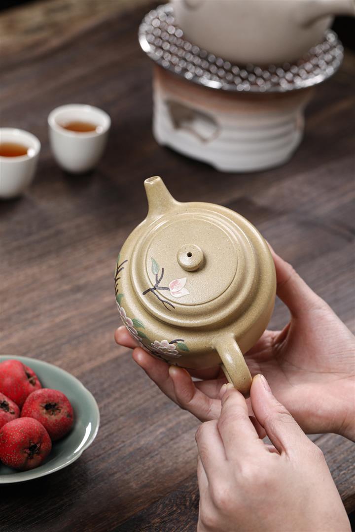 260cc原礦本綠泥彩繪德鐘泡茶壺POT9553